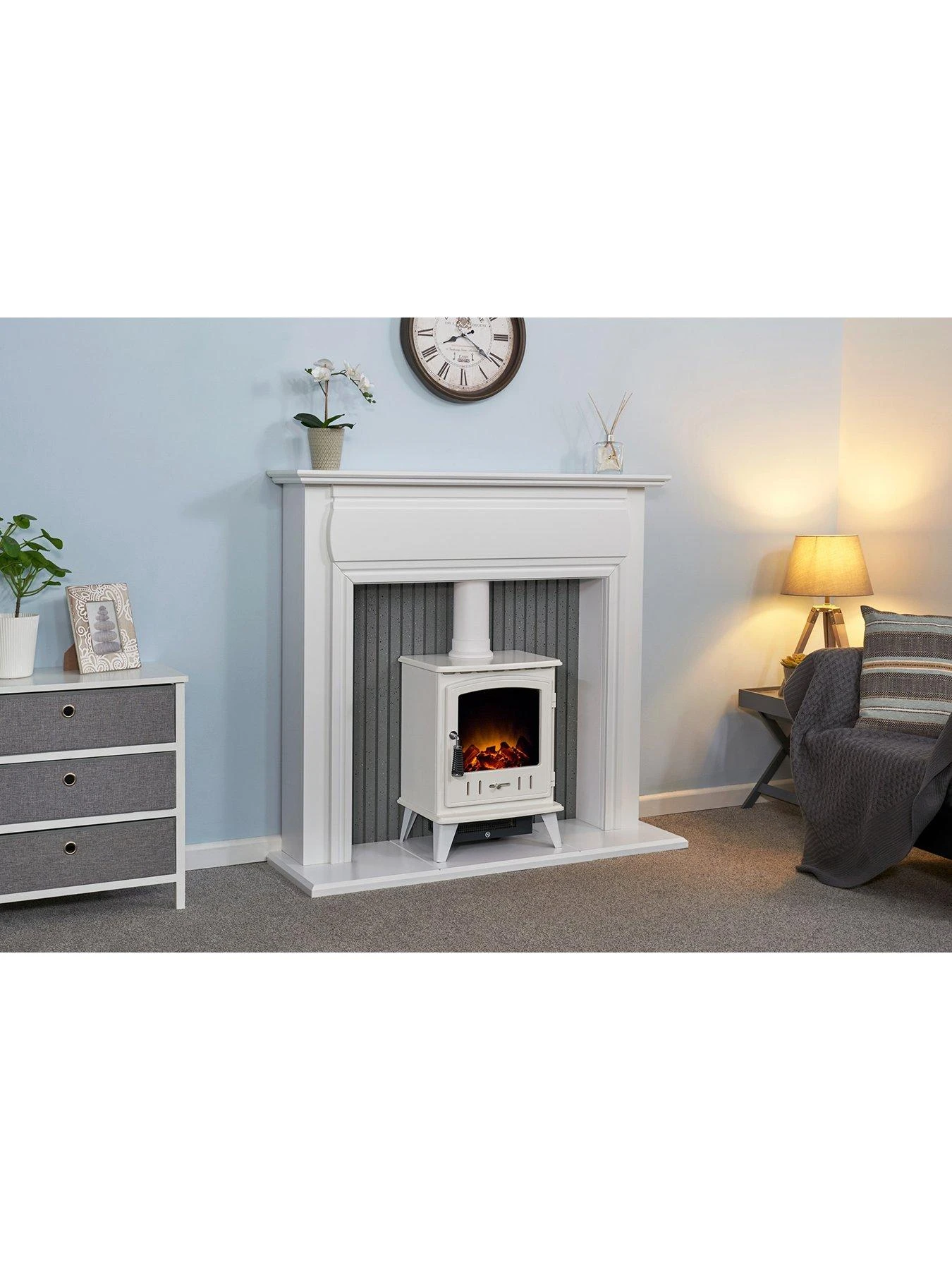 Adam Fires & Fireplaces Adam Florence Stove Fireplace in Pure White with Aviemore Electric Stove in White Enamel, 48 Inch