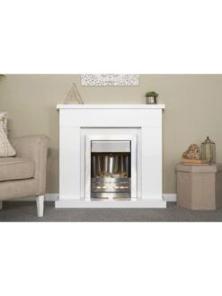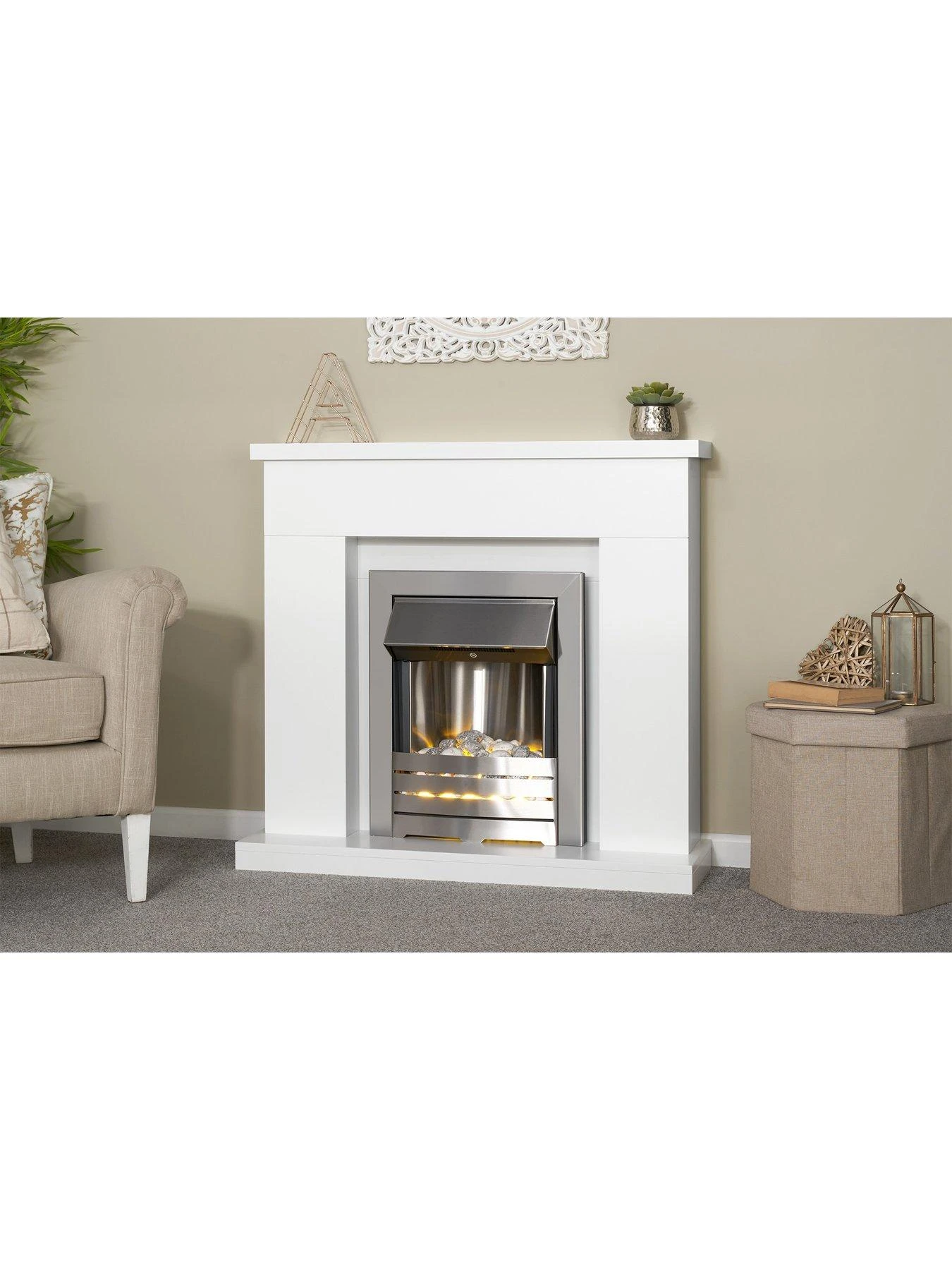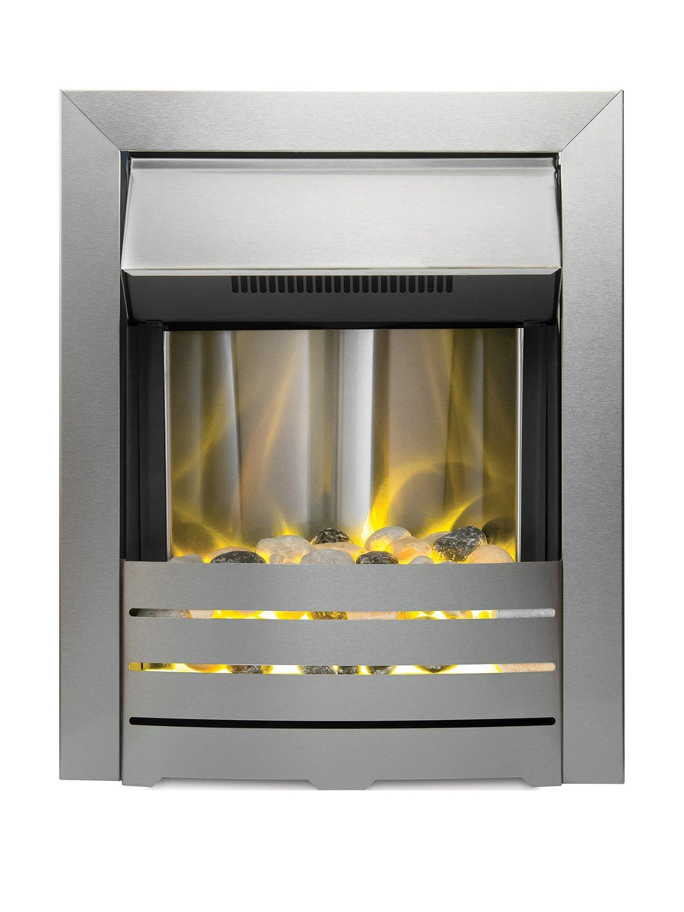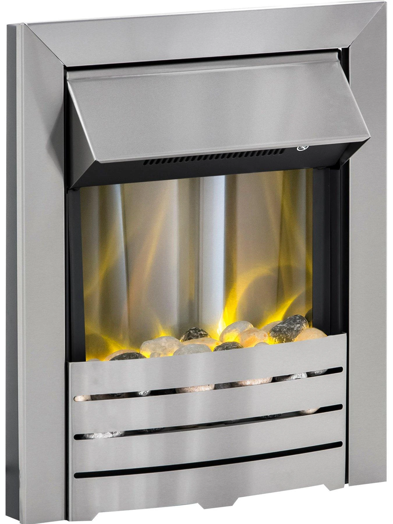 The Adam Fires & Fireplaces Helios Electric Fire in Brushed Steel makes a stylish and cosy addition to your lounge.