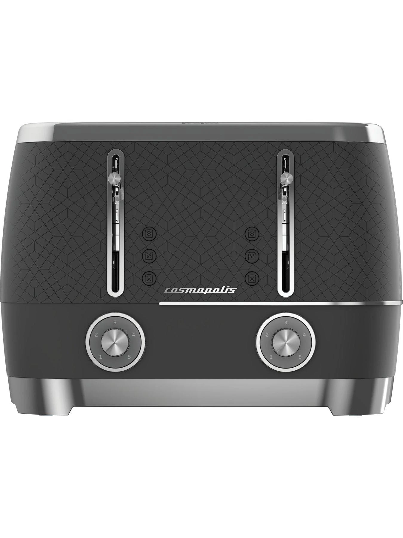 Part of our stylish new Cosmopolis breakfast range, this retro inspired 4 slice toaster has extra wide slots and 5 levels of browning control so you can enjoy toasted bagels, waffles or thick-cut bread just the way you like it. Take bread straight from the freezer and enjoy fresh toast in minutes with the defrost setting or reheat toast without browning before easily removing it with the high lift function.