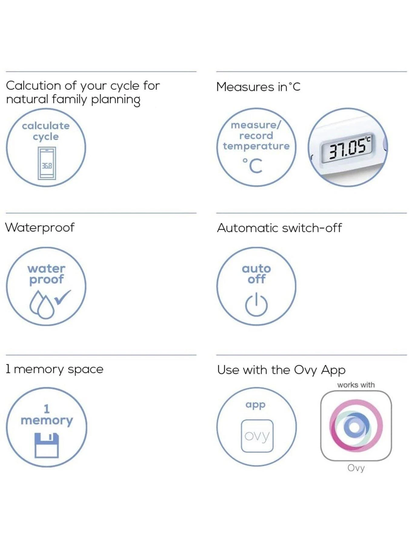 Natural family planning is growing ever more popular; methods of cycle tracking are becoming easier with technology advances and ultimately, women are choosing to have more control over their own body. The Beurer OT20 is an ovulation thermometer that will give you certainty in exact measurements; use orally or vaginally to measure your temperature digitally to 2 decimal places for enhanced accuracy. But how do you make sense of these readings? The OT20 is designed to work with the free OVY app; download the app to your smartphone, input your data and the software will decipher your cycle, identifying fertile and non-fertile days. The ovulation thermometer has a comfortable flexible tip which can be disinfected for cleaning and comes with a protective cap for storage. When your reading is complete, the OT20 will give an acoustic signal and hold your reading in the in-built memory until you take your temperature again the next day.