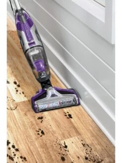 The Bissell CrossWave Pet Pro simultaneously vacuums, washes and dries multiple surfaces from hard floors, vinyl, laminate and delicate wood flooring to rugs and even rubber floor mats. Spilt bowls of milky cereal, scattered dog biscuits and drips of water or messy foot prints – left by two-legged or four-legged family members – are no problem. It’s specifically designed to remove pet hair, dust, and the dirt that your four-legged friends leave behind.