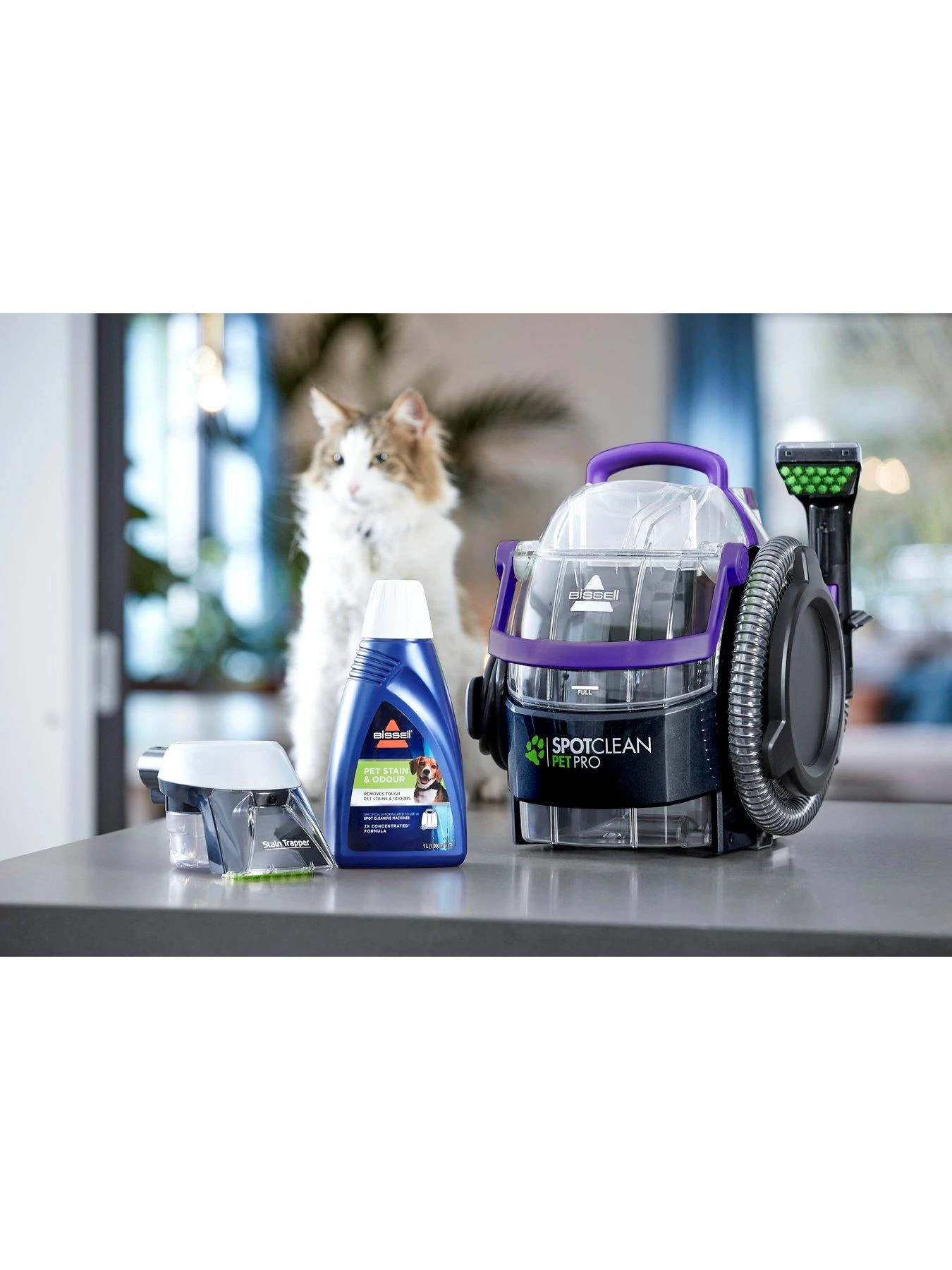 The Pet Pro Portable uses a combination of superior suction, scrubbing action and specially formulated Bissell cleaning solutions to remove spots, stubborn stains and embedded dirt to breathe new life into carpets and clean up after your pets.