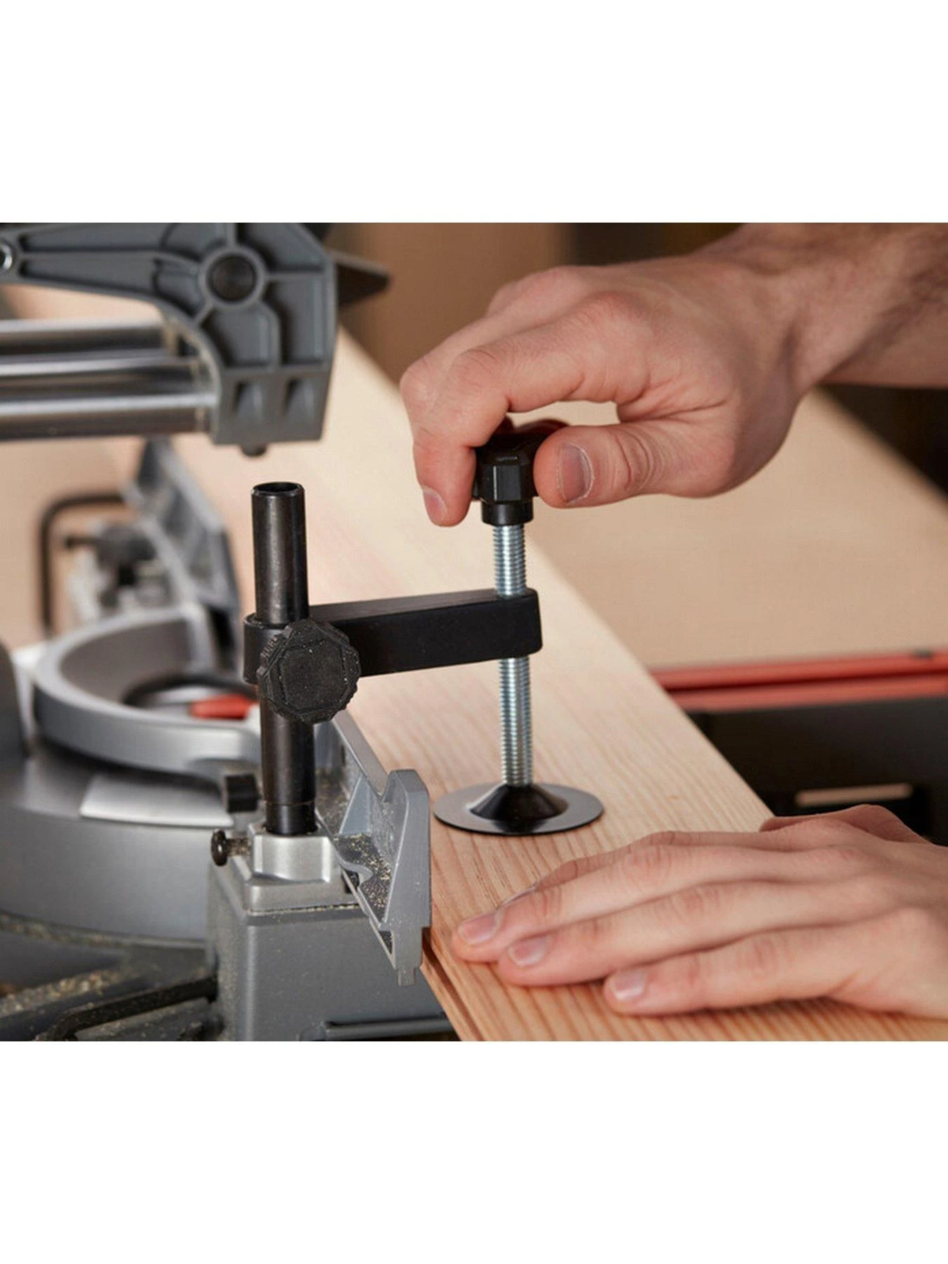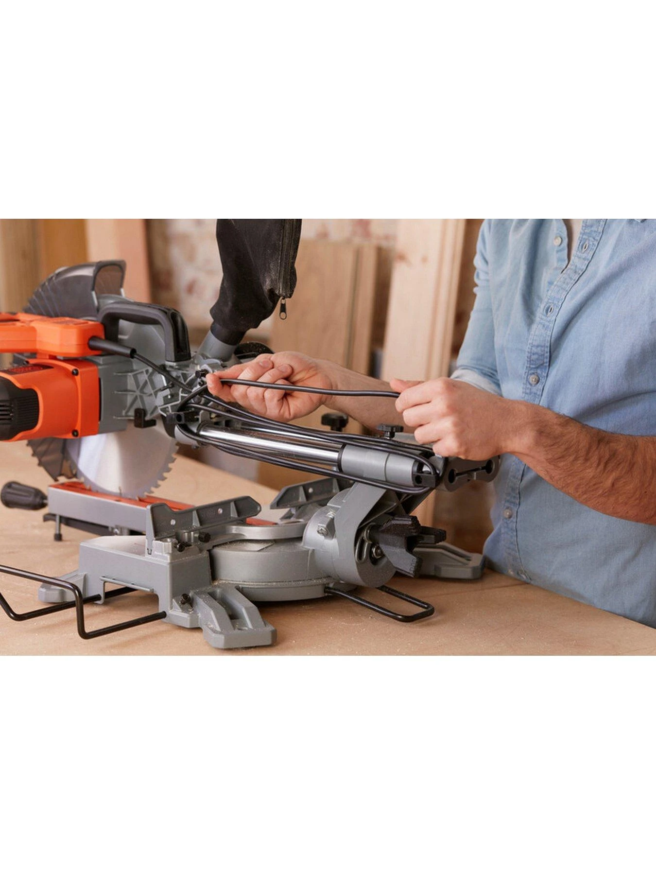 - Mitre saw can also be connected to a workshop vacuum.