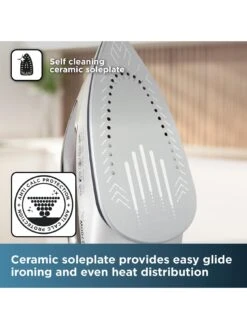 The ceramic soleplate ensures the iron glides effortlessly over all types of fabric, so there is no need to worry about snagging any of your clothes. For precision steaming large and small garments, the 100g continuous steam output adds to the irons ultimate performance, whilst the 3 bars of steam pressure add moisture to the fabric to make removing creases and crinkles effortless.