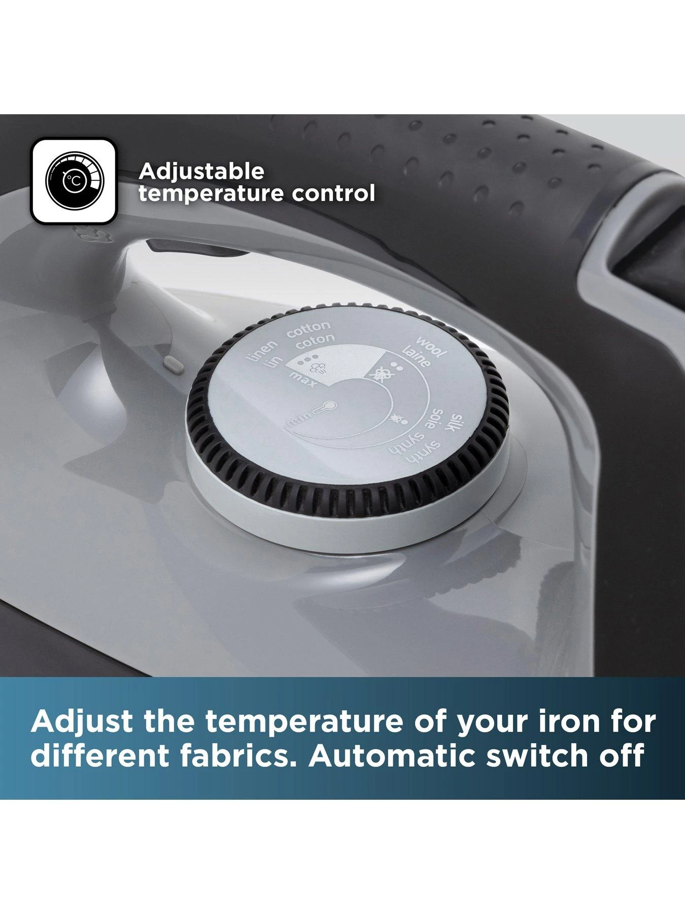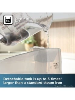 The large 1.5L detachable water tank is up to 5x larger than a standard steam iron and helps to reduce refilling time, so you can iron more of your clothes in less time. The iron stays fresh from the inside out with the anti-calc function, which reduces nasty limescale, ensuring higher performance for a longer time. Simply adjust the temperature of your iron to suit different fabrics including wool, silk, nylon and cotton.