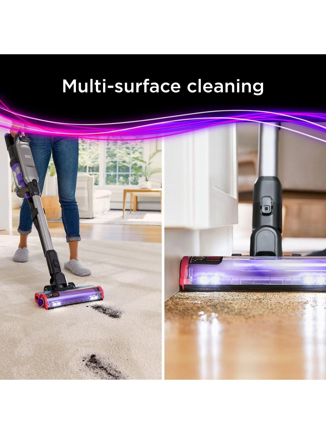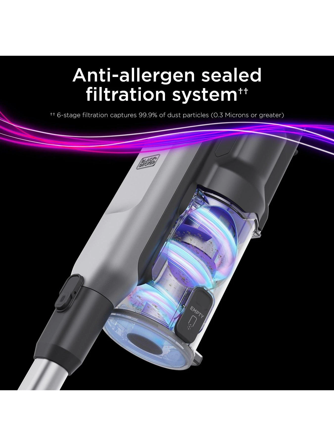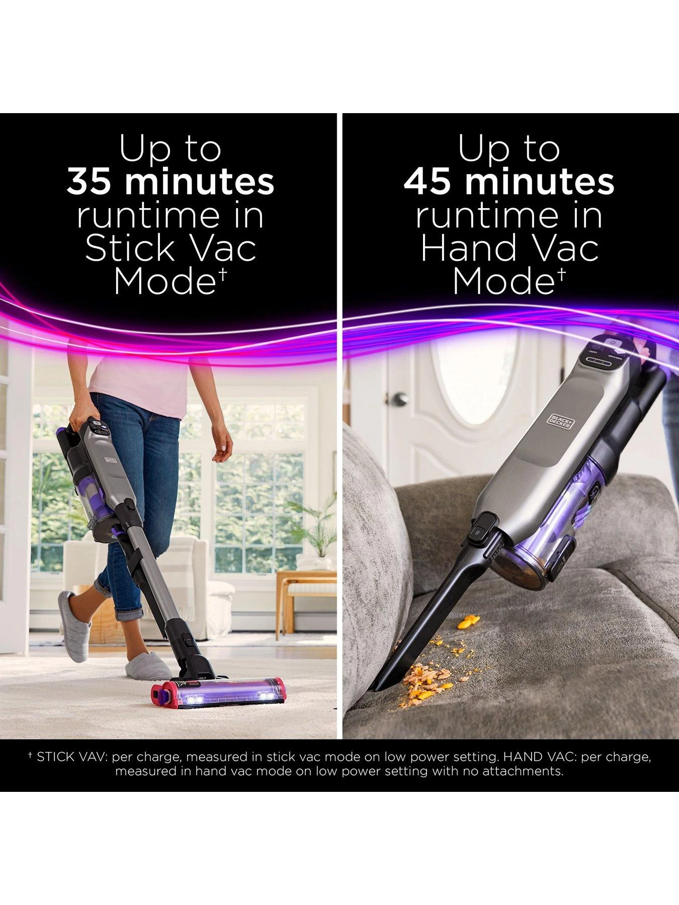* Compared to all BLACK+DECKER Cordless Stick Vacs tested to standard ASTM F558