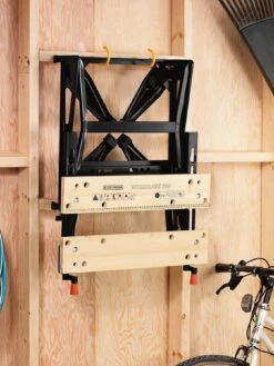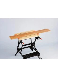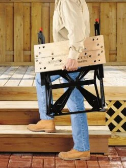 Dual working heights allows use as a workbench, bench tool stand, vice, or sawhorse. Durable steel construction. Folds flat for compact storage and easy transport.