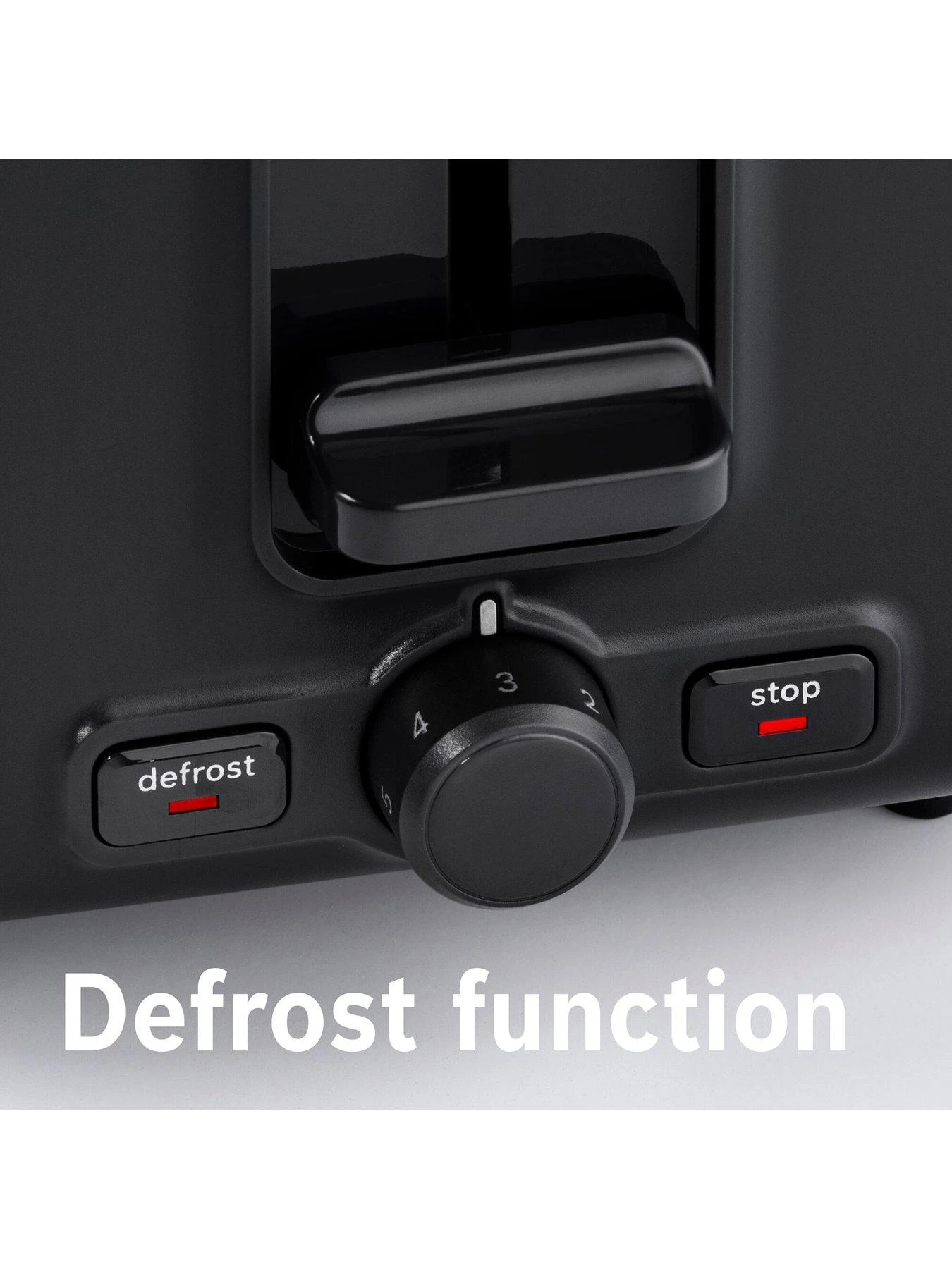 Thanks to the integrated defrost function even frozen bread will be toasted quickly and perfectly. The warm-up setting together with the integrated bun warmer makes baked goods such as bread rolls or croissants really tasty and warm – as fresh as in a bakery. For even more comfort, the crumb tray is easy to remove and to clean. If a toast gets stuck, the toaster switches off automatically – so you always feel safe. In addition, you can store the cord in the integrated cord keeper.