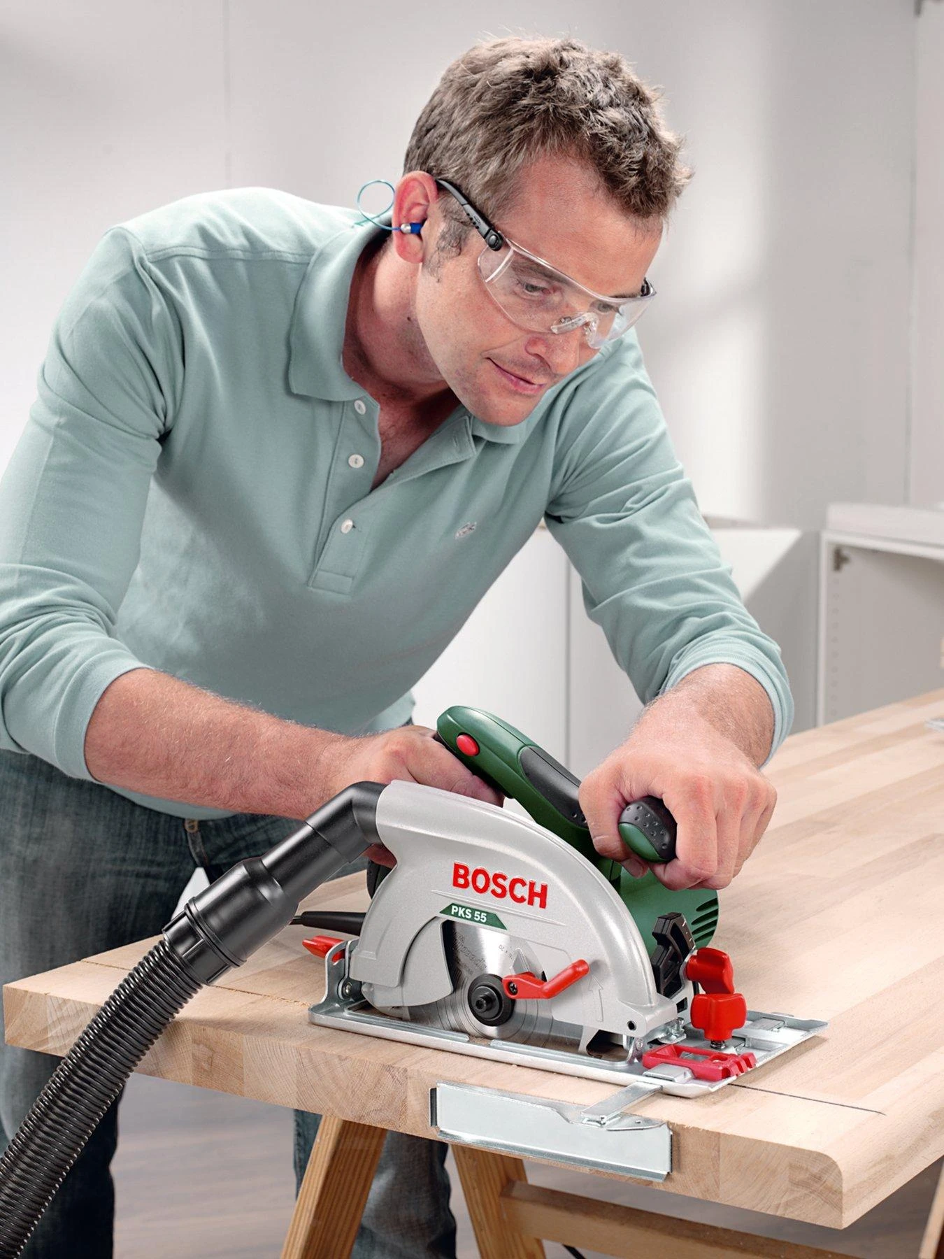 The powerful Bosch PKS55 1200-watt Circular Saw gives you fast and accurate results