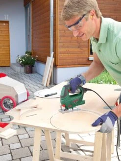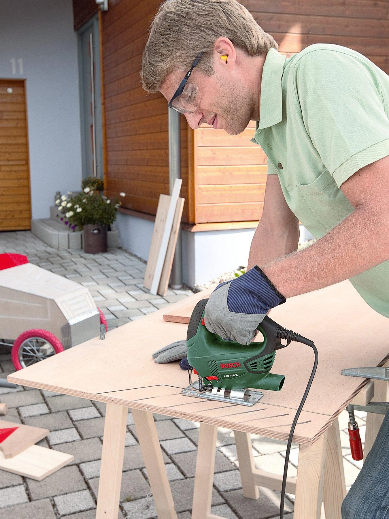 This powerful Bosch jigsaw – the PST700E – has a no-load stroke rate of 500-3000rpm. Cutting depths are: Wood: 70mm, Steel: 4mm and Aluminium: 10mm. You can make effortless and safe saw blade changes on this Bosch jigsaw within seconds without any additional tools.