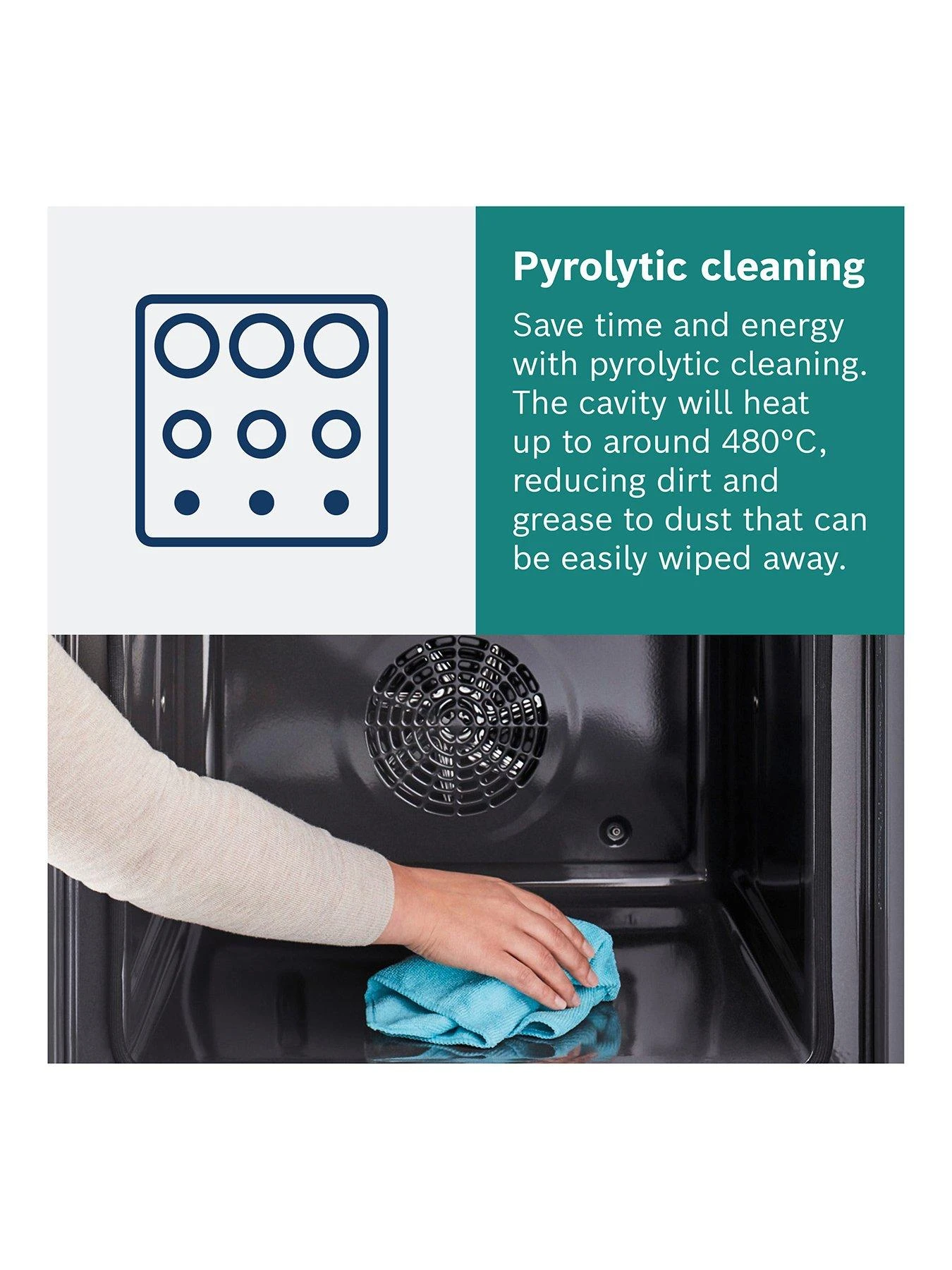 With pyrolysis self-cleaning, you can forget about the elbow work and chemical cleaning products. Depending on the degree of soiling, the appliance heats up to max. 480 °C to reduce all dirt to ash that just wipes away.