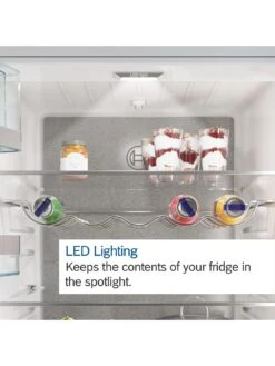 It’s easy to stay organised with the Bosch Series 4 KGV39VLEAG 70/30 Fridge Freezer. It’s tall, with a 342-litre interior that can home 19 bags of shopping, which is ideal for a weekly shop for the family. Intelligent FreshSense sensors continuously monitor and control the temperature to provide a consistent, stable environment that keeps everything in tip-top shape for longer. We also love the Easy Access pull-out glass shelf in the fridge.