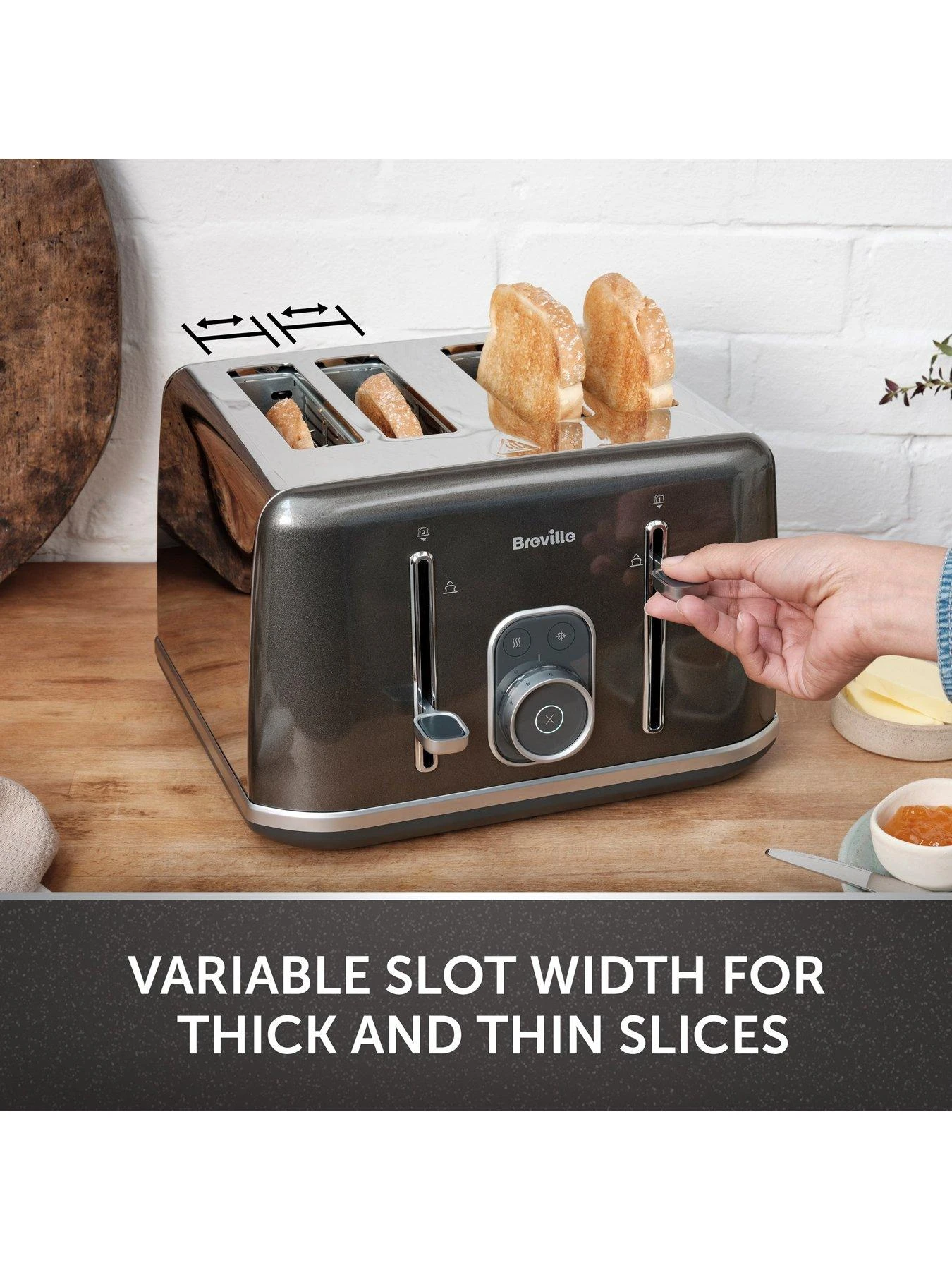 - Variable browning control lets you pick your preferred shade of golden brown; variable width bread slots allow for both thick and thin slices