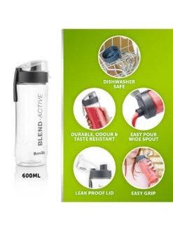 - Blending bottles feature a handy carry strap, and are durable, shatter-proof, odour and taste-resistant, and BPA-free