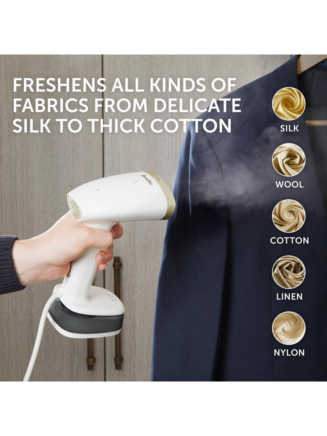 Don’t want to compromise on looking sleek while travelling because of a limited baggage allowance? Lightweight and mega-compact, the Breville CompactSteam folding garment steamer fits in any bag with ease so you look sharp wherever you go. Pressed for time? Simply hang up your garment and start steaming within 26 seconds. Small but powerful, CompactSteam delivers up to 20g/min continuous steam for fast wrinkle removal. With a generous 200ml water tank providing up to 15 minutes of run time, get more steaming done with fewer trips to the sink. Want to steam fabrics other than clothes? This handheld steamer boasts a 3m cord for extra mobility, giving you the freedom to freshen up curtains, cushions, drapes and other hard-to-wash items around the home. *Compared to model VIN432 Breville EliteTEMP handheld steamer