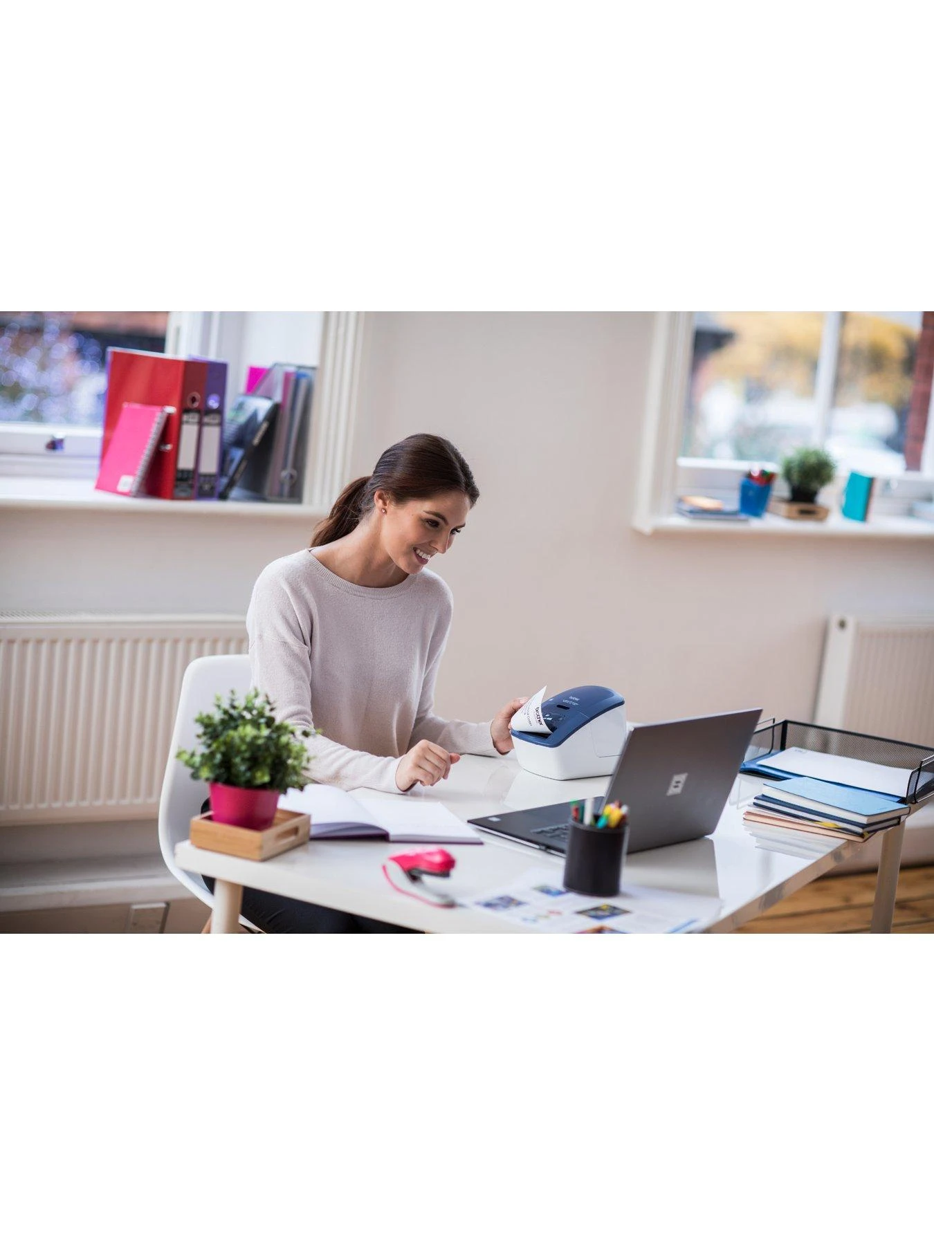 The smart, compact design of the QL-600B address label printer allows it to sit neatly on your desk, connected to your PC or Mac’s USB interface. Using P-touch Editor label design software (available as a free download) you can add text, images, barcodes, frames and other item onto your labels before printing. Use the integrated cutter together with one of the continuous DK label rolls to create labels up to one metre in length – ideal for signs and banners.