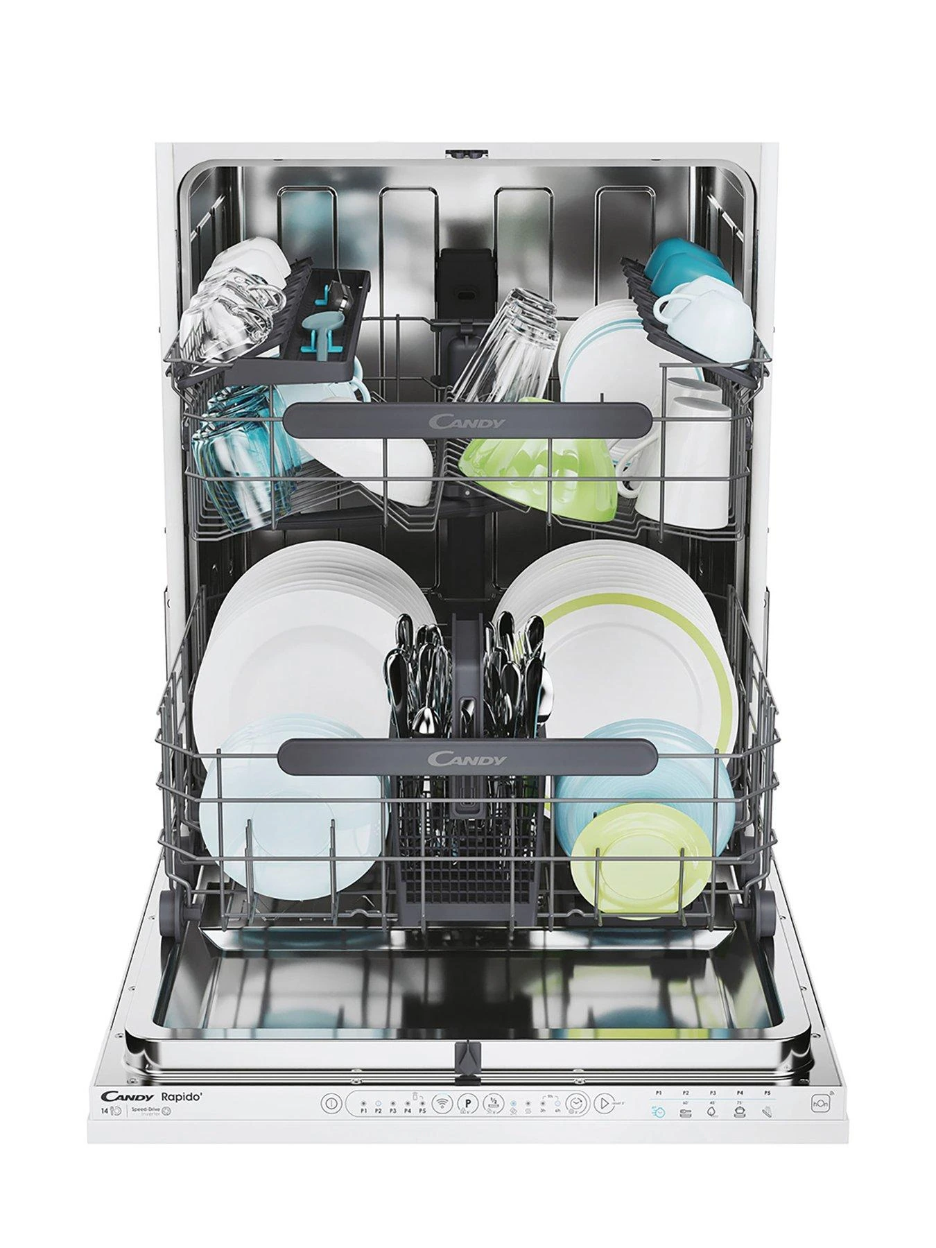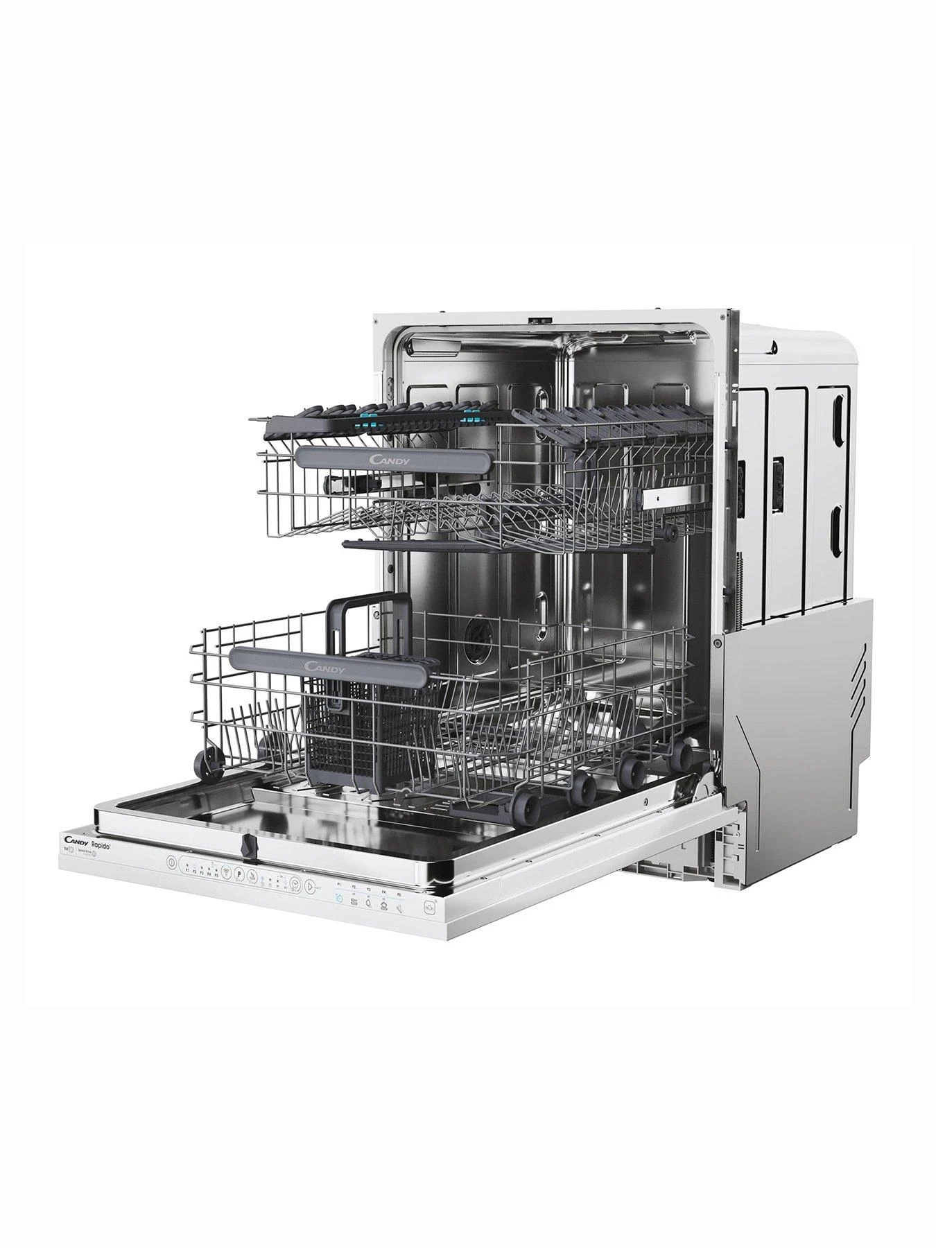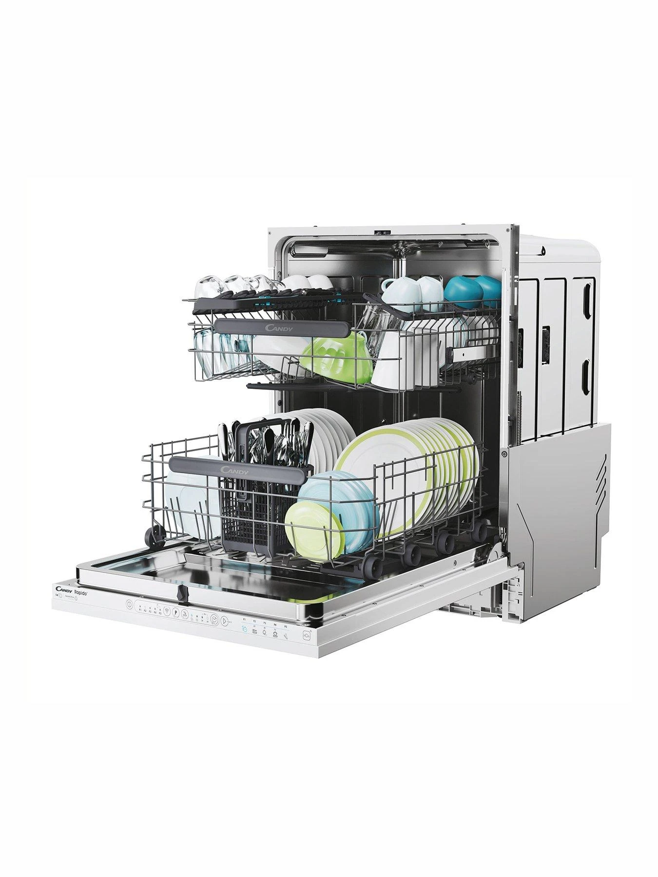 - The new Candy Rapido’ dishwasher is provided with the 49 minutes cycle, able to perfectly wash a half load, cutting consumption.