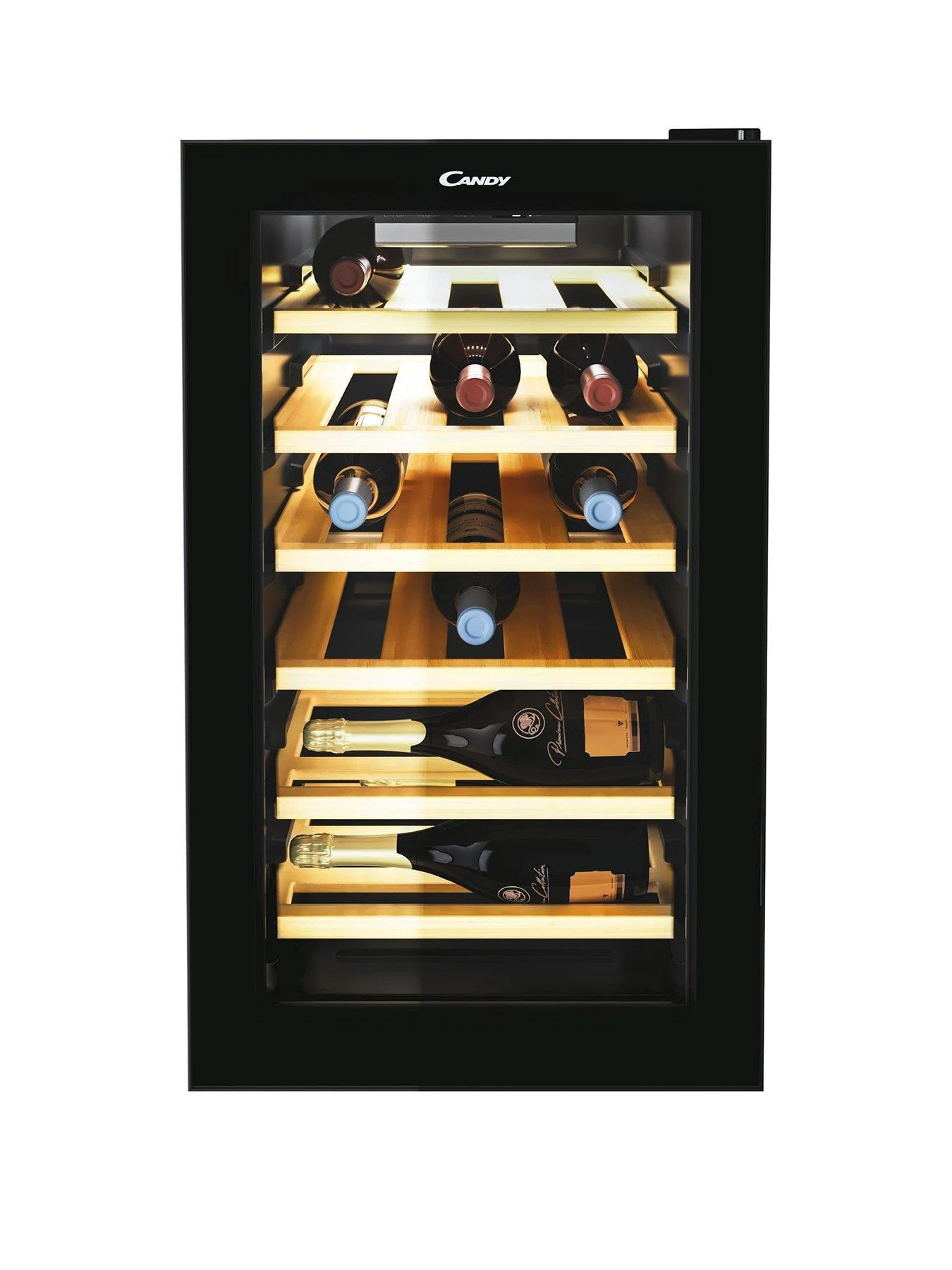 Candy CWC021ELSPKN Freestanding Wine Cooler, Single Zone Temperature, 21 Bottle Storage, 40cm wide, Bamboo Shelves – Black