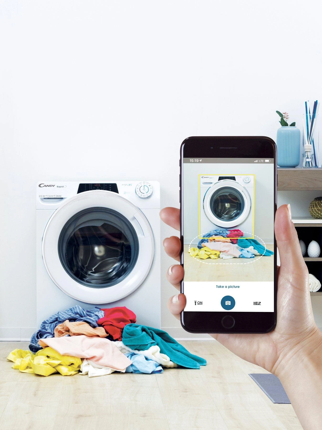 The Candy RO16106DWMCE-80 Rapido also features Smart Touch technology – just download the free Candy Simply-Fi app to your Android smartphone or tablet and you can download new wash programmes or ensure your appliance is working at its best. The Snap and Wash feature, available through the Candy Simply-Fi app on your smartphone, enables you to snap your laundry and RapidO will then suggest the best programme to use.