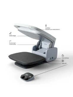 - Safety features include auto-off after 13 minutes of inactivity & certified temperature-rated plastics