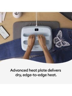Send precise time and temperature settings through Bluetooth connection via the Cricut Heat app. Follow on-screen, step-by-step prompts that guide you at every turn. The ceramic-coated heat plate reaches temperatures up to 400F (205C) of dry, even heat. Press with peace of mind as safety features like an insulated safety base and auto-off provide a worry-free experience.