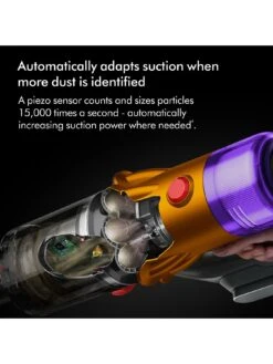 - A piezo sensor continuously sizes and counts dust particles – automatically increasing suction power when higher dust volumes are identified4.