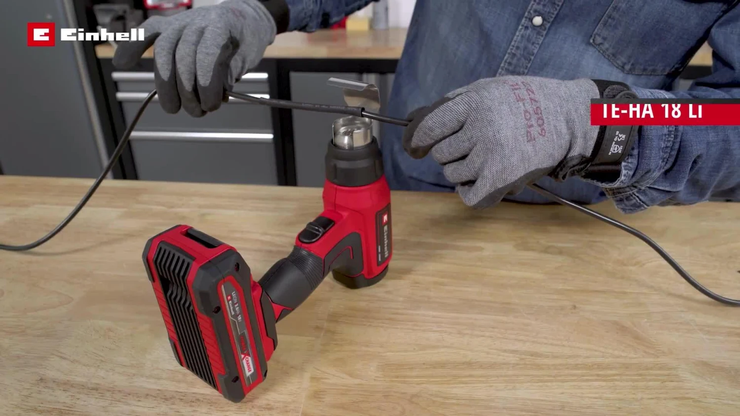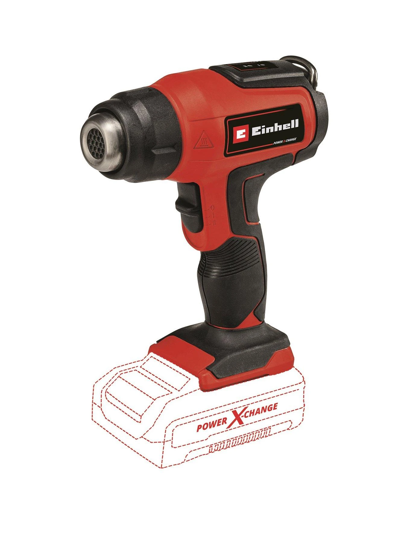 The Einhell TE-HA 18 Cordless Heat Gun is part of the Power X-Change family, which can all be used with the same battery. Requires 1x 18V Einhell Power X-Change rechargeable battery (available separately – see item RR6WR).