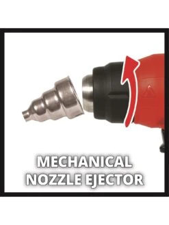The overheating protection ensures that safety is assured during operation. For easy removal of the reducer nozzle, wide jet nozzle and reflector nozzle which are included, there is a mechanical nozzle ejector. There’s also a swing-out metal hook for flexible work and storage.
