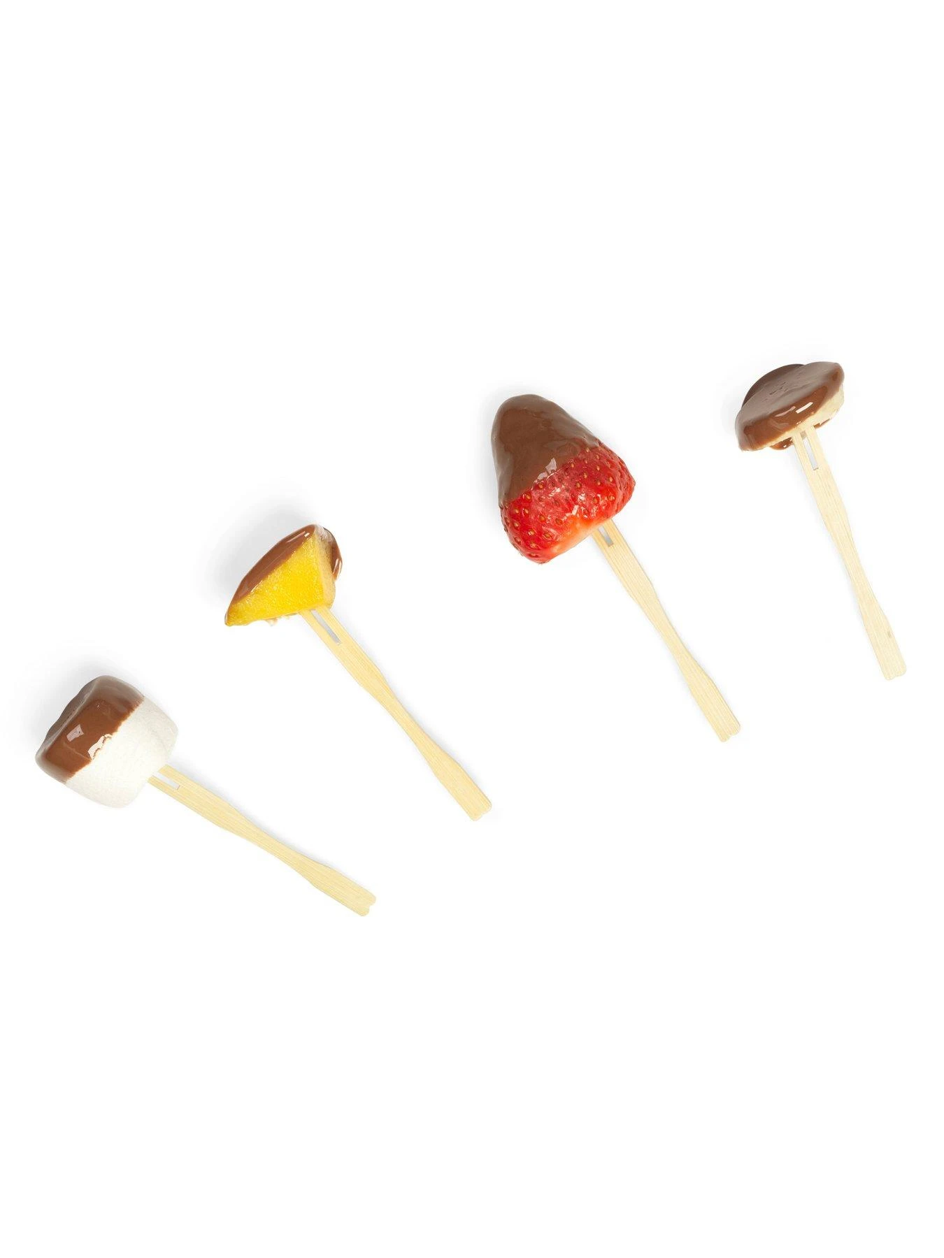 - Easy to clean once used, the fountain includes 100 bamboo skewers so you can easily dip treats in and cover in melted chocolate.