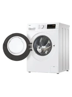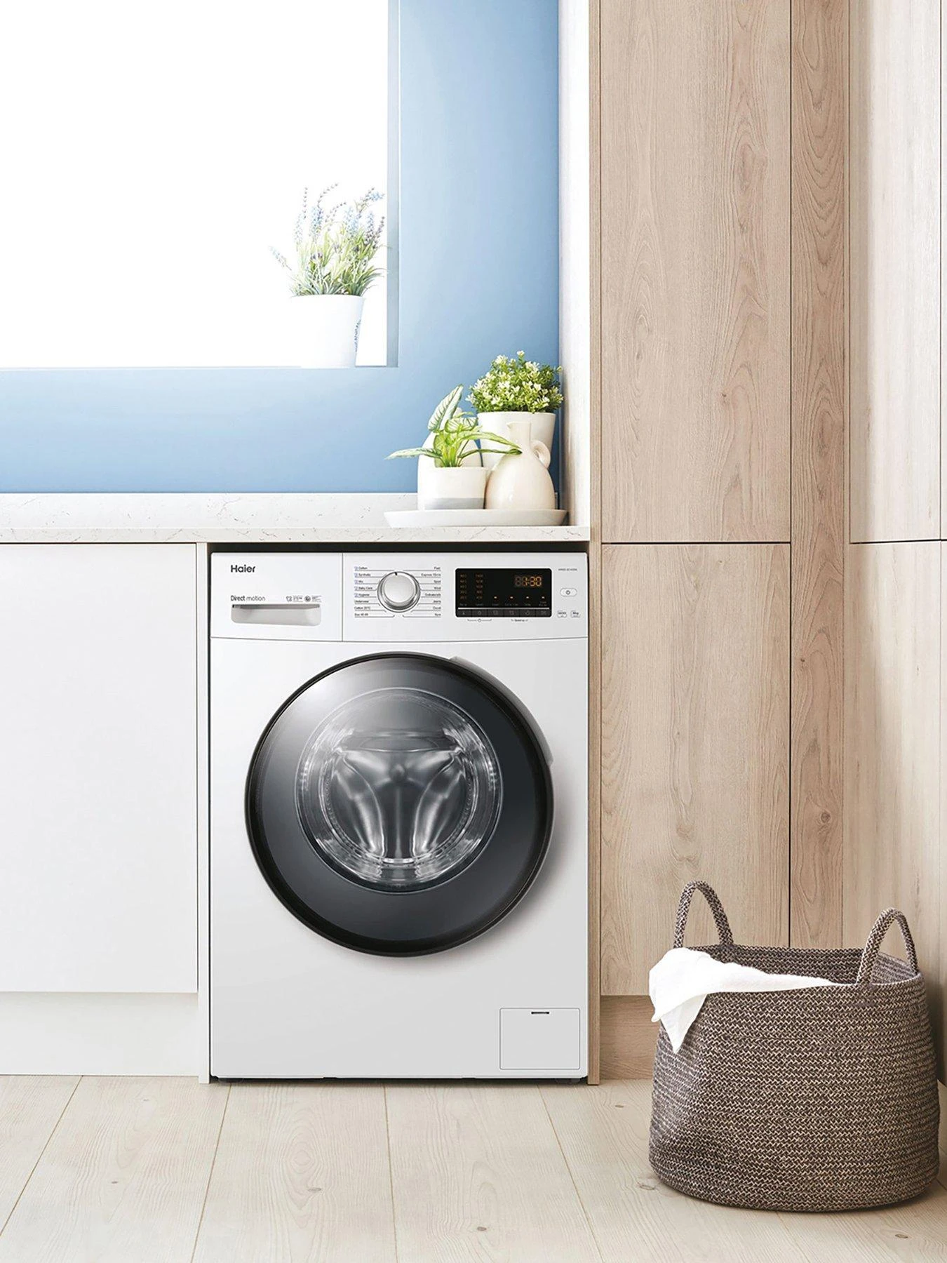 - This Haier washing machine uses digital internal scales to weigh your laundry, before automatically adjusting water consumption and cycle duration.