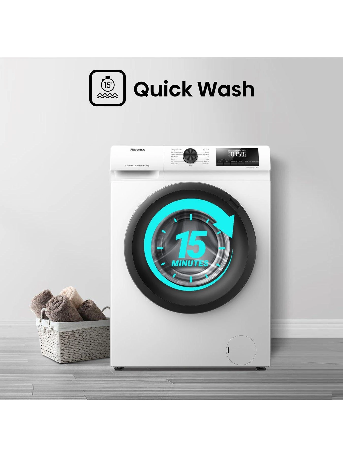 Hisense 1 Series WFQP7012EVM 7kg Load, 1200 Spin Washing Machine – quietly gets on with the job.