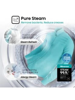 After the steam wash has ended your clothes will smell as clean and feel as soft as new. Hisense Allergy steam/Baby steam care technology releases steam from the bottom of the inner tub quickly and removes the allergen from clothes to ensure the washing items are allergen-free.