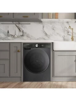 The Hisense 5S Series WF5S1245BB washing machine comes with a massive 12kg wash load capacity (that’s up to 60 shirts in one load!) and is perfect for tackling the laundry of a large household. This model has 19 great programmes, steam refresh functionality to help minimise ironing, a 1400 rpm spin, and inverter technology making it really quiet and more durable.