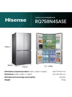 Hisense RQ758N4SASE Pureflat 90cm Cross Door, American Fridge Freezer – Stainless Steel