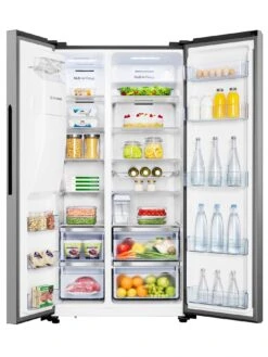 Spacious, stylish and energy efficient, the Hisense RS694 Fridge Freezer’s 535-litre XL interior can hold 29 bags of shopping – plenty of room for your weekly shop and lots of room for all the family’s favourites. A built-in non-plumbed water and ice dispenser on the front offer you freshly chilled water, cubed or crushed ice in an instant to keep your drinks cool. Perfect for family mealtimes – or hosting a party!