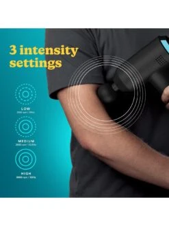 The Homedics Physio Massage Gun is designed to provide you with a deep tissue percussion massage, helping to release tight aching muscles. To use, choose your desired massage head and intensity level and gently move the massager over the part of your body you wish to massage.