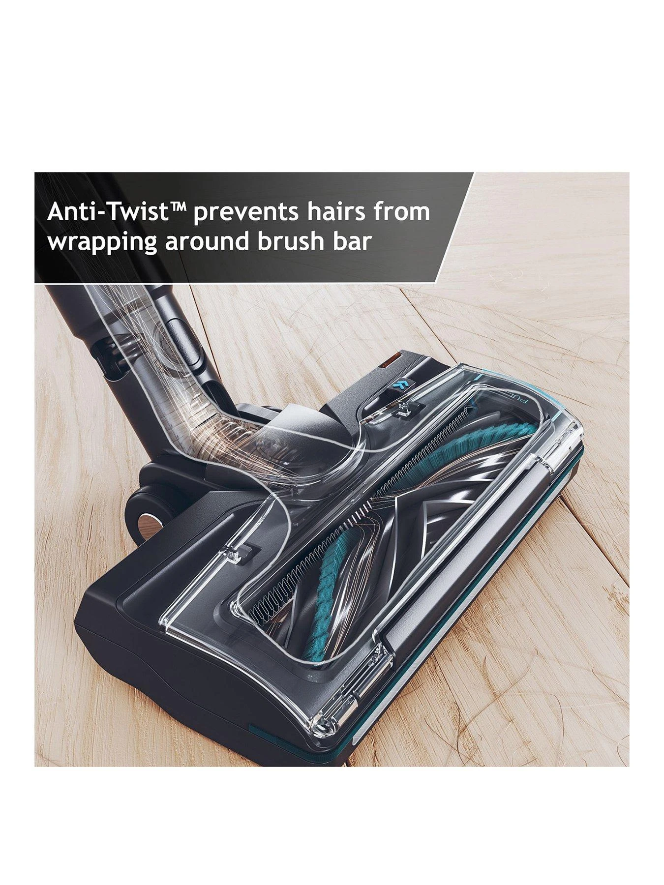 HF4 comes fitted with an ANTI-TWIST™ combination floorhead to actively prevent hair wrapping. Using specially developed bristles and an integrated comb, this handy feature untangles hair as you clean.
