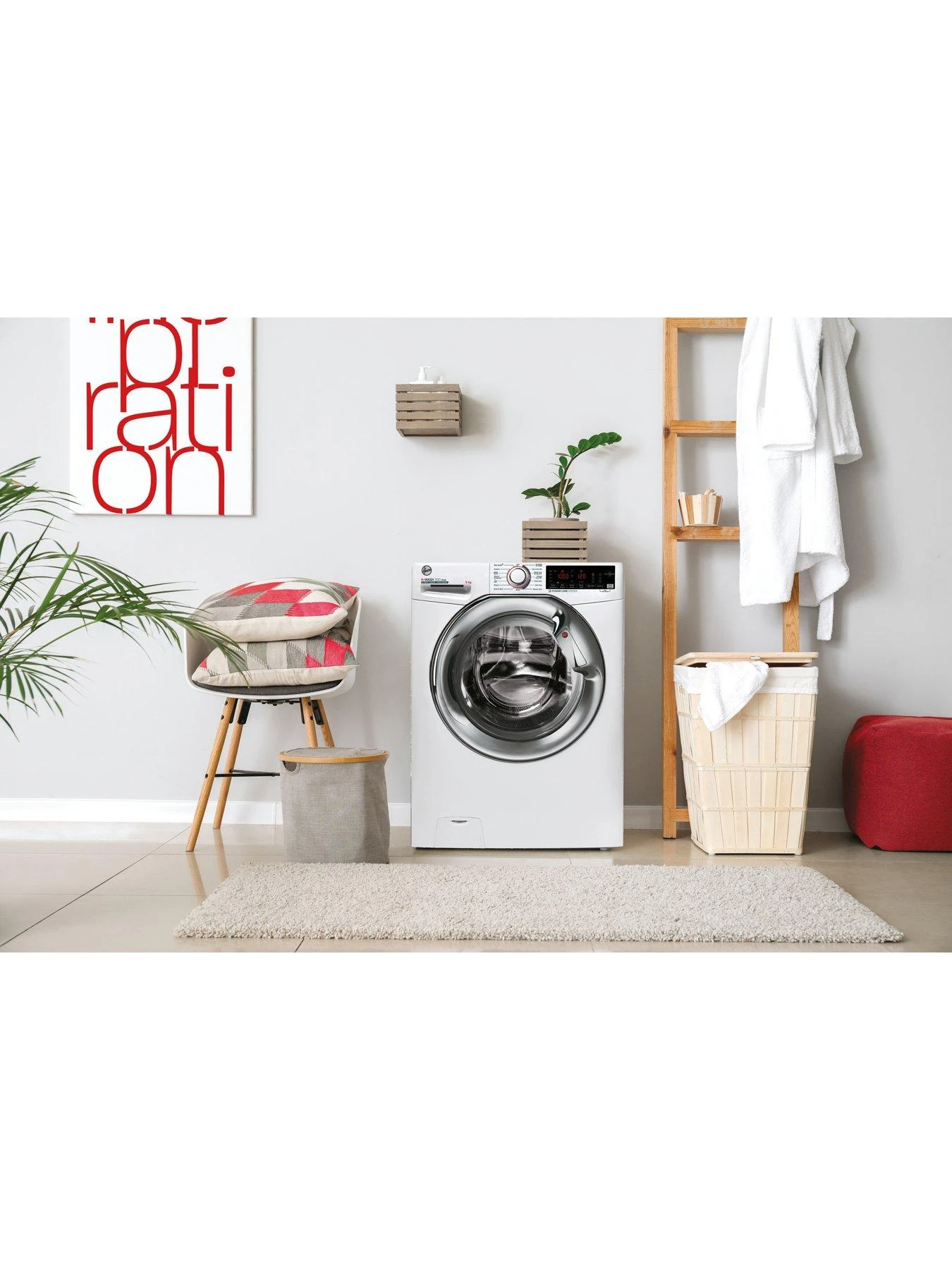 Hoover H-WASH 300 H3WS69TAMCE Freestanding Washing Machine, Chrome Door, WiFi Connected, 9 kg Load, 1600 rpm – White