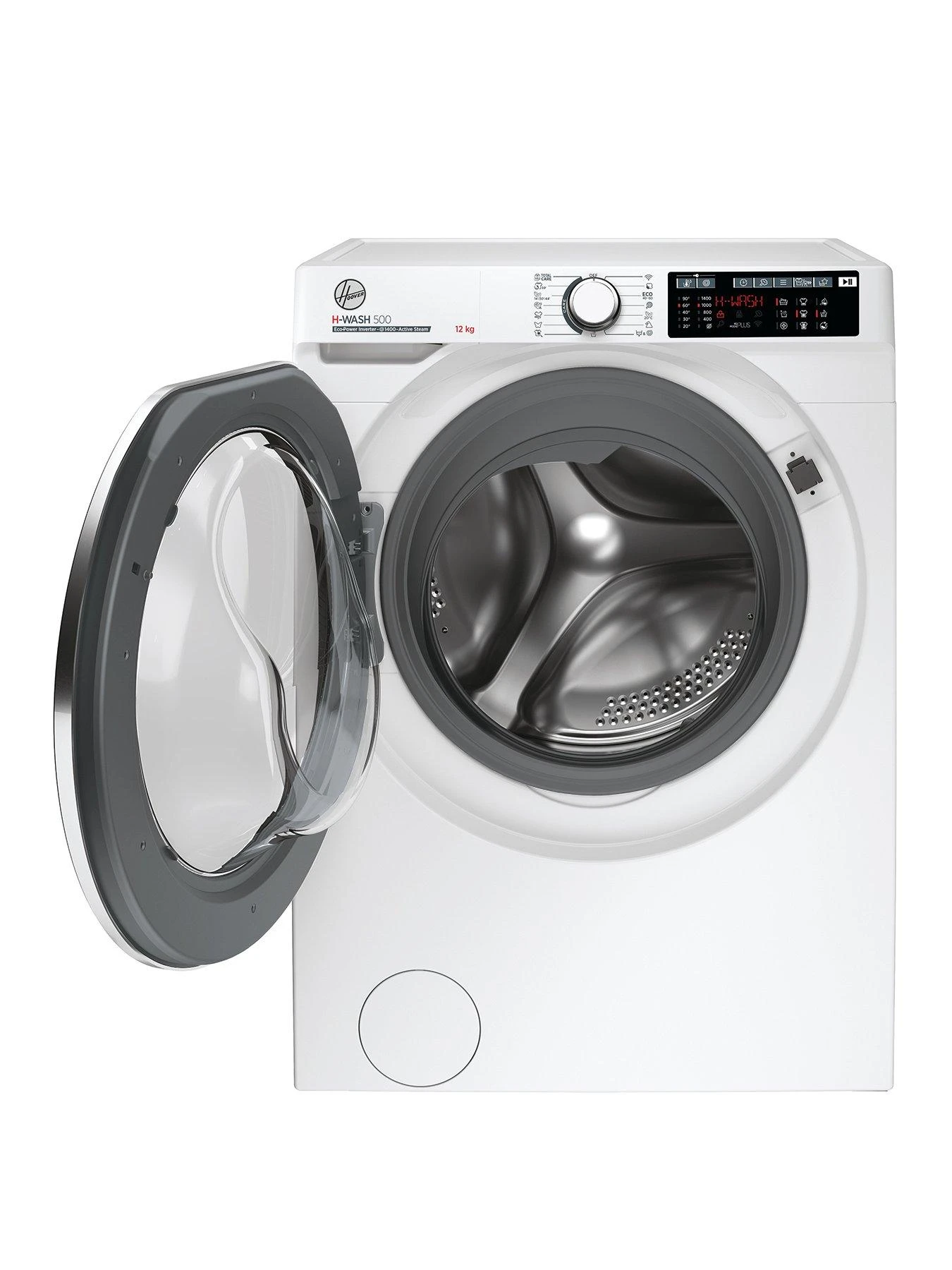 This Hoover washing machine from the H-WASH 500 range comes with a 12kg load capacity (equal to 60 shirts!) and a 1400 spin speed. There are 14 wash cycles to suit all your clothes, and the A energy rating means it uses less energy, is more efficient and is up to 35% cheaper to run that an equivalent D or E rated Hoover washing machine.