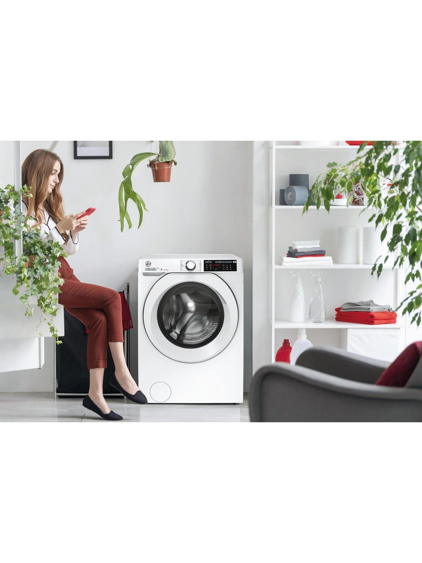 Built-in WiFi links to your phone via the Hoover hOn app to check the status of your machine, receive cycle notifications, download new cycles and more. The Scan To Care feature lets you collect and store all your clothes’ washing instructions, while suggesting the best cycle. You can also link to Alexa or Google for the best way to remove stains.