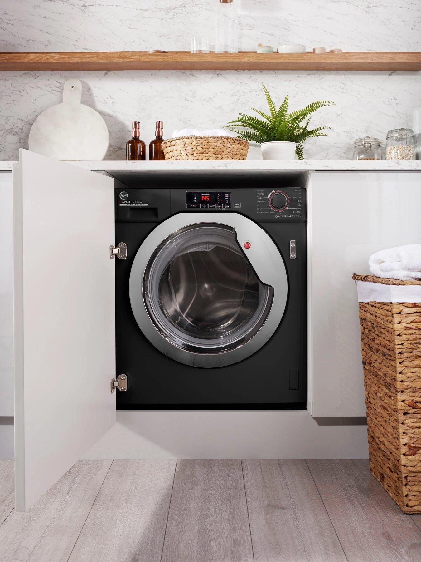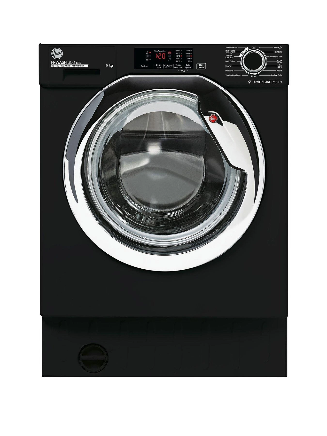 Hoover H-WASH HBWS 49D3ACBE/80 9kg Load, 1400 Spin Integrated Washing Machine – Black with Chrome Door. Great results every time.