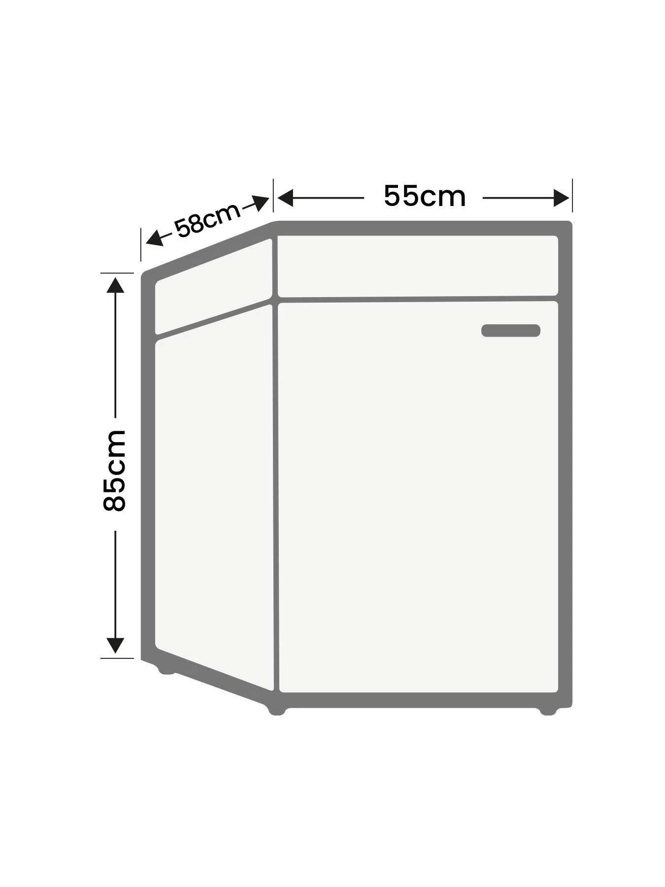 This 125-litre fridge includes 2 glass shelves, a metal external handle, large salad container and plenty of storage space on the back of the door, making it easy to find what you’re looking for quickly. It also slots neatly into a 55cmm wide niche in your kitchen.