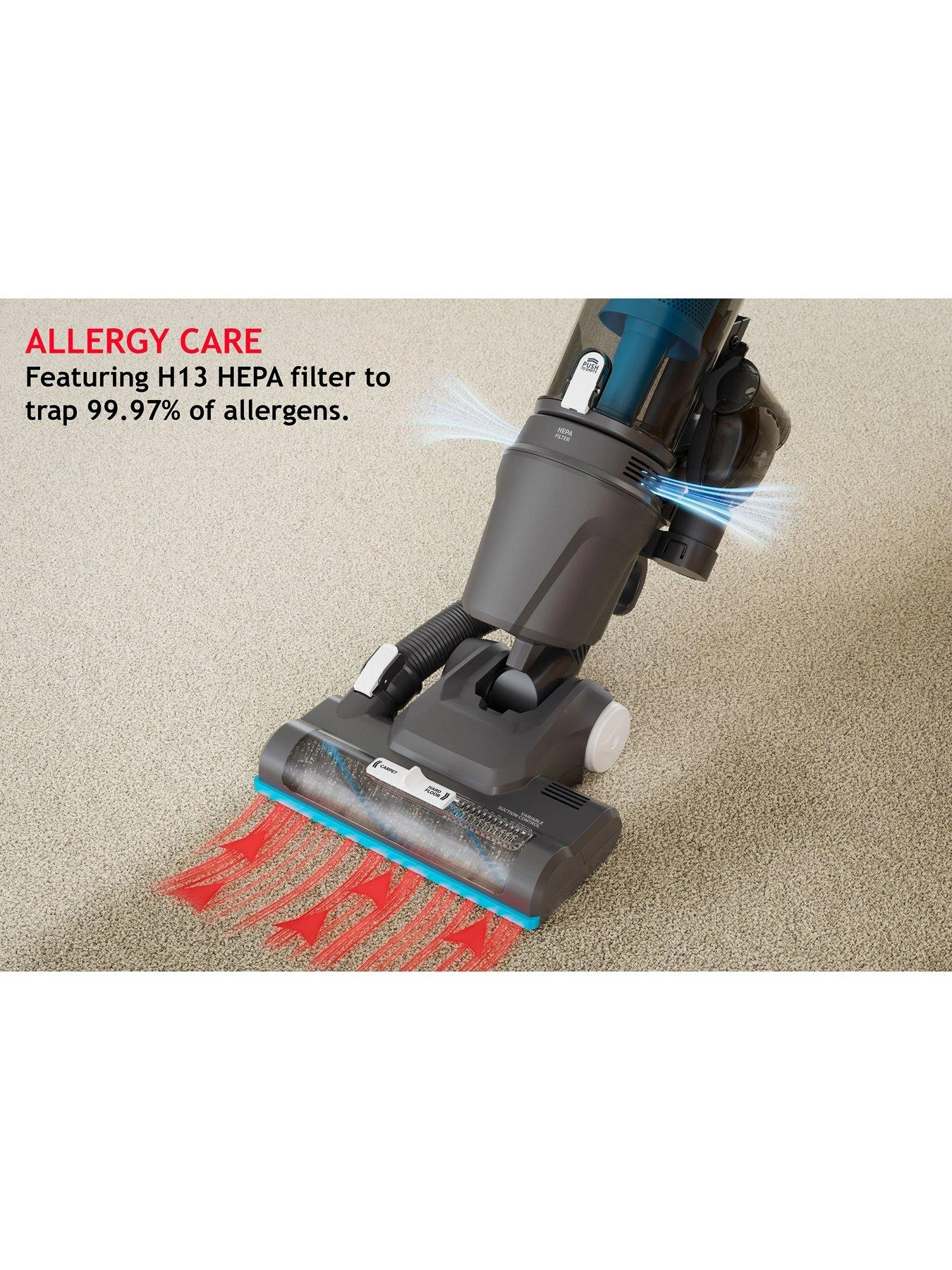Hoover Upright 300 Pets uses advanced multi-cyclonic technology for improved dust separation, pushing dust to the bottom of the bin away from the filter, and helping the filters stay cleaner for longer. It is ideal for allergy sufferers due to the addition of a washable H13 HEPA filter which traps allergens and helps purify the air in your home.
