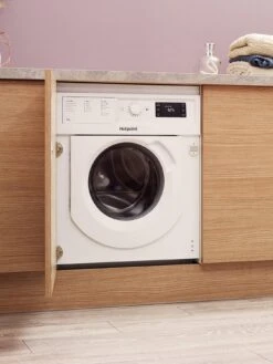 This integrated Hotpoint washing machine will slot perfectly into your busy kitchen or utility room. Just add a matching unit front for the perfect blend.
