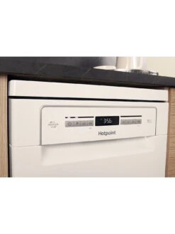 Hotpoint Clover HSFO3T223WUKN 10-Place Slimline Dishwasher – the compact solution for smaller kitchens.