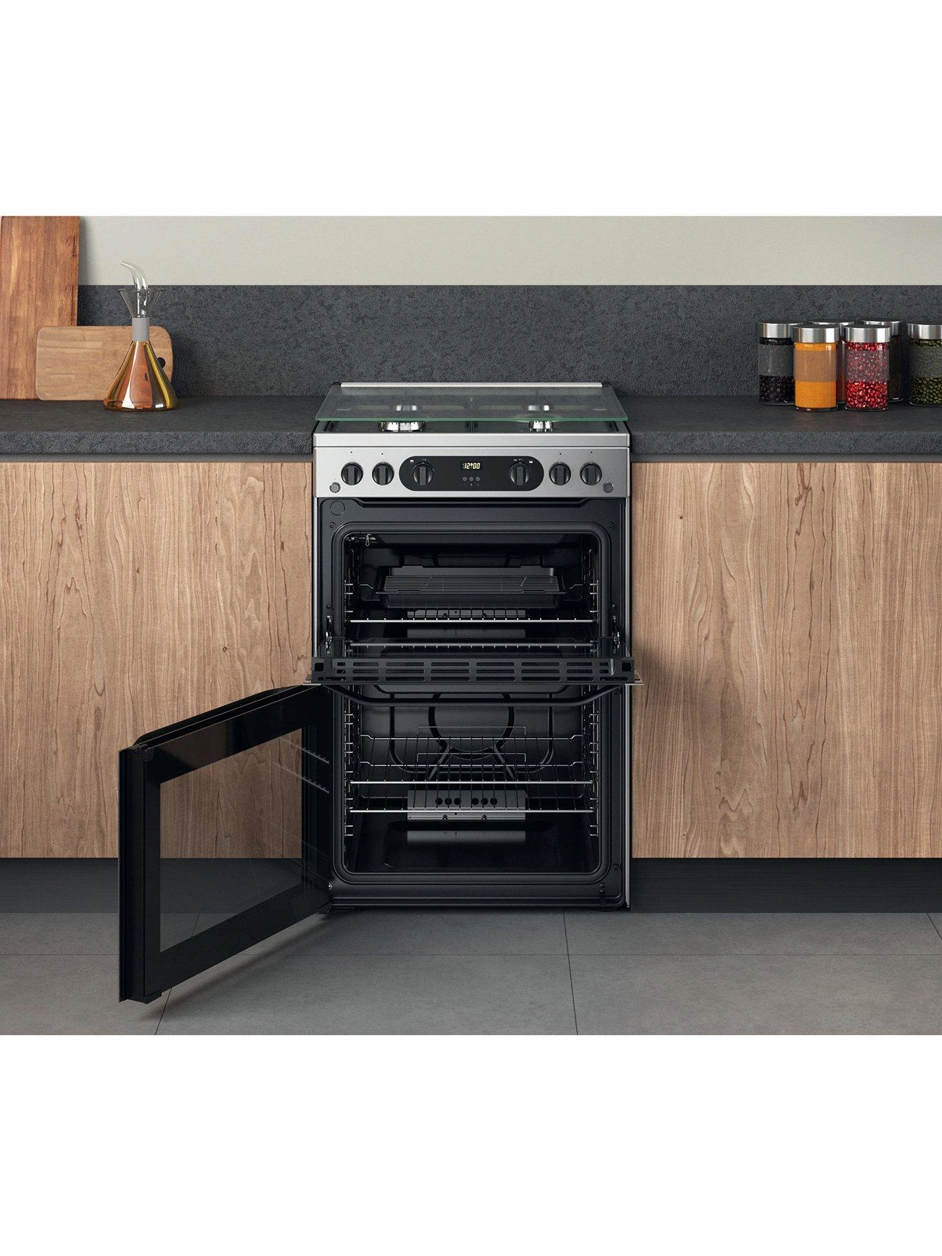 Hotpoint HDM67G0CCX Double Oven Gas Cooker – lots of space to get creative.