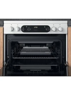 This versatile Hotpoint cooker comes with 2 ovens, a ceramic hob and a built-in grill to suit all your cooking needs. The 77-litre main oven features Multiflow Technology that evenly distributes heat to give you perfect cooking results every time. Includes LED display and programmable electronic timer.