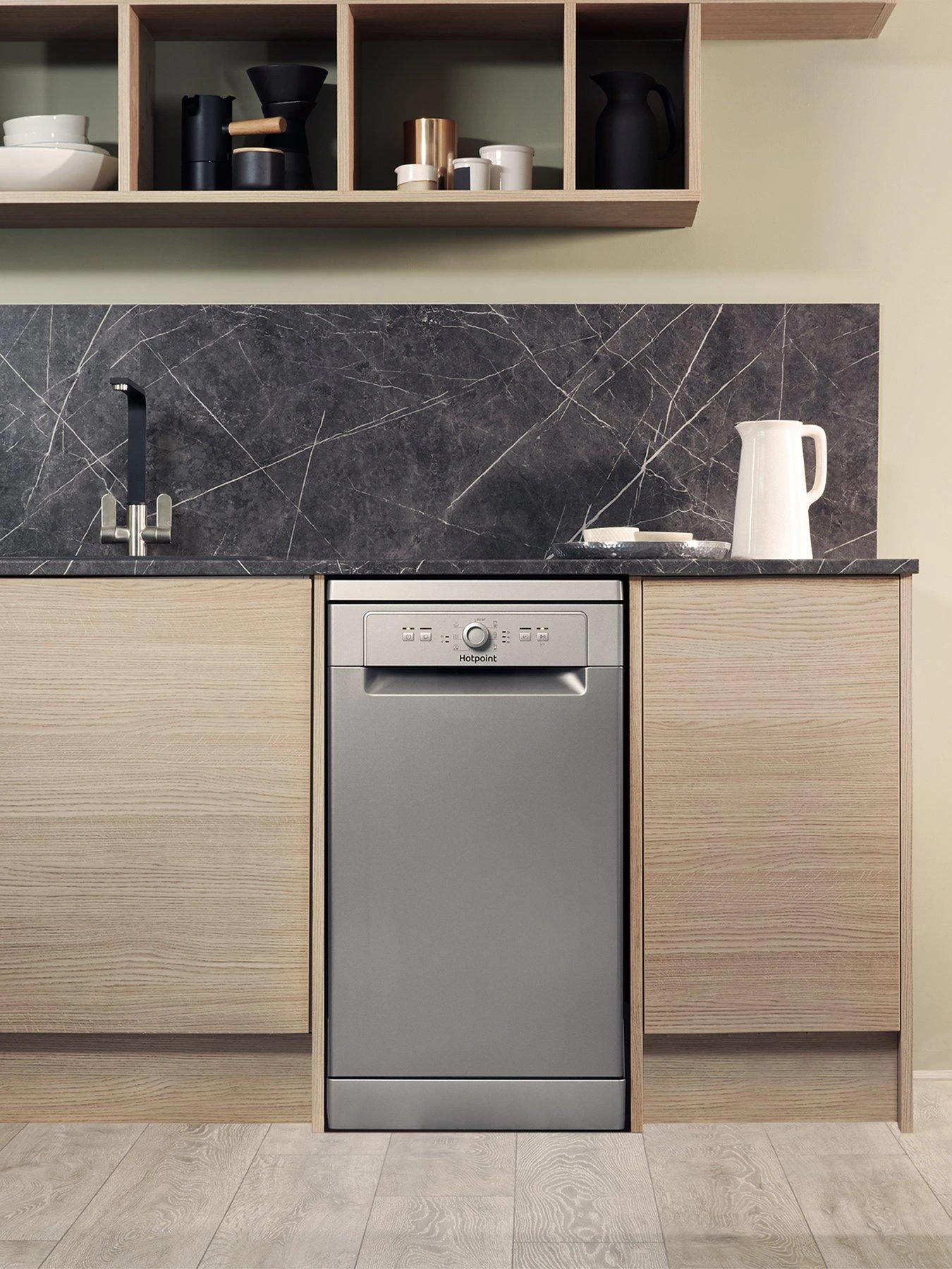The Hotpoint HSFE1B19SUKN Slimline Dishwasher lets you say goodbye to the sink!