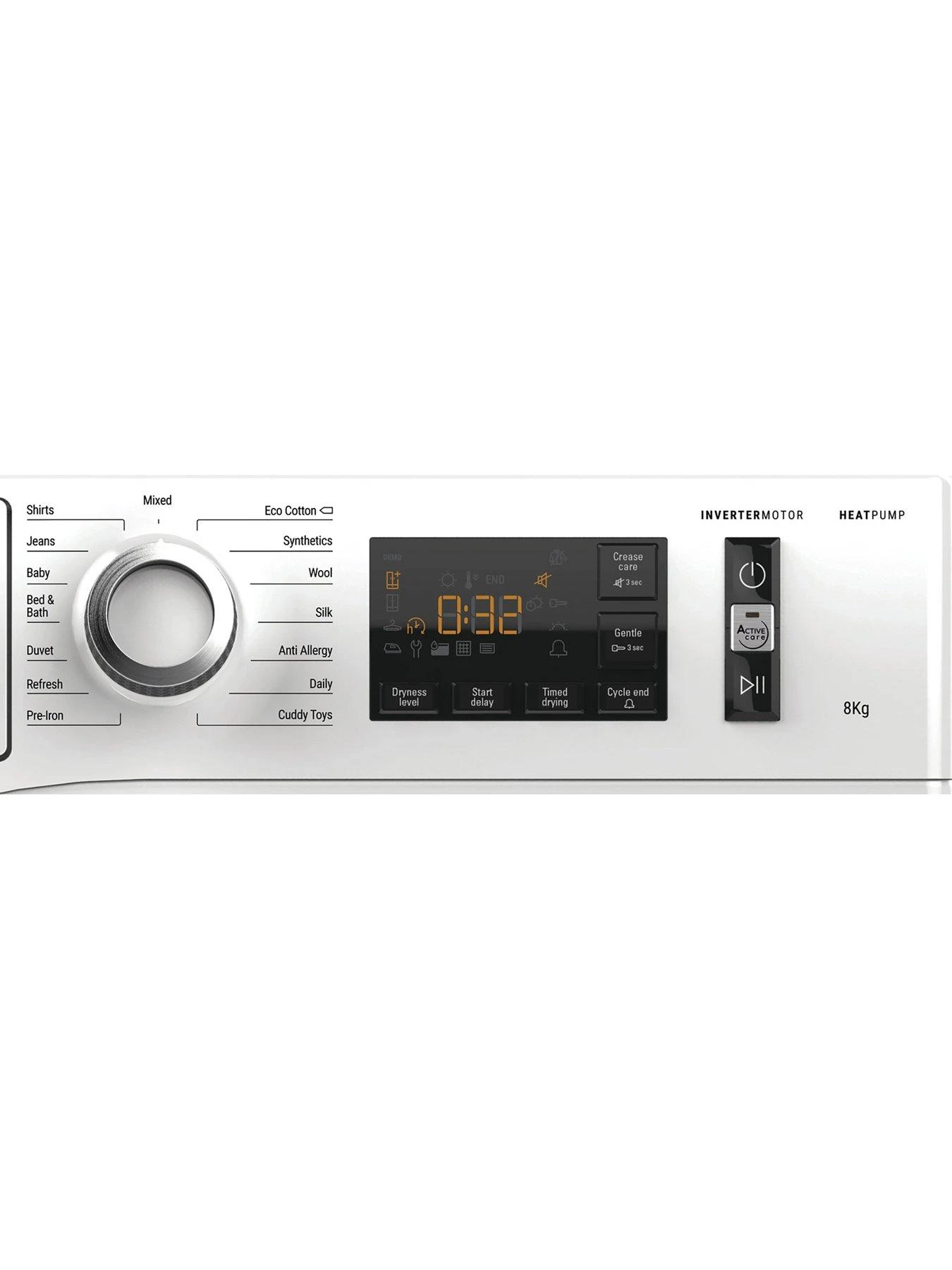 - Crease Care Option – Less creasing, less ironing, less hassle. Pre- and Post-Creasecare occasionally tumble the load with no heat