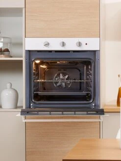 This spacious, 66-litre, fan-assisted own helps cook all your favourite family meals, and includes a built-in grill for browning dishes and rustling up bacon sandwiches.